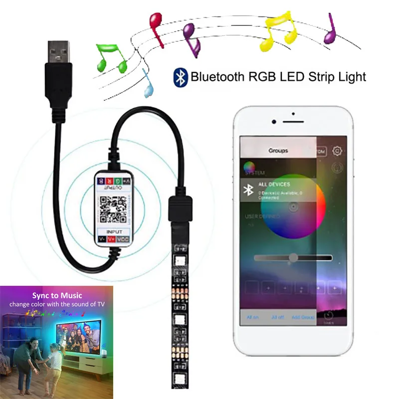 1 м 2 м 3 м 5 м 4 м 10 м 5 в Bluetooth USB Светодиодная лампа освещение Гибкая полоса освещения 5050 красный зелёный синий Диодная лента для вечевечерние
