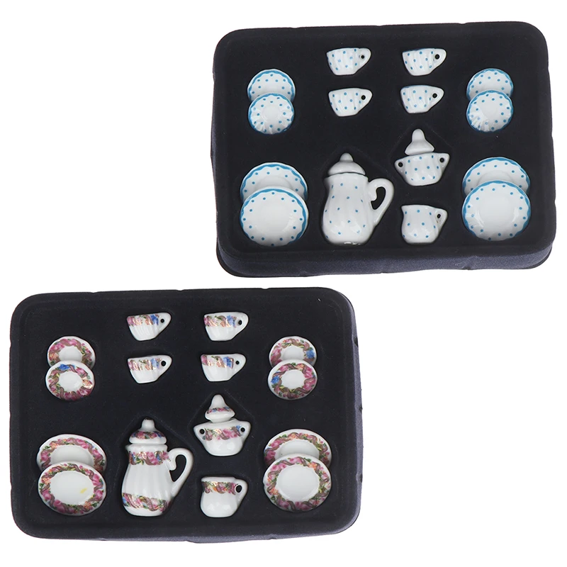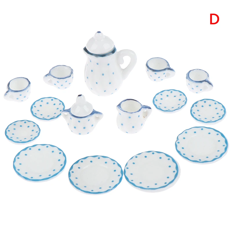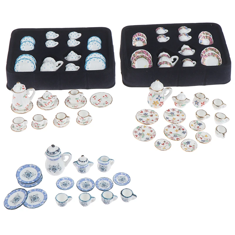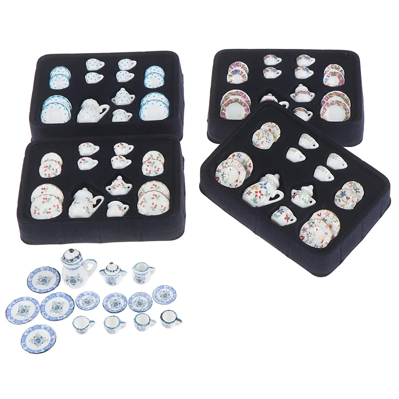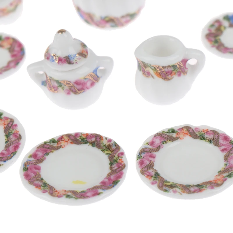 17 шт. 1:12 Миниатюрный фарфоровый чайный набор чайных чашек китайский цветок посуда кухонный кукольный домик
