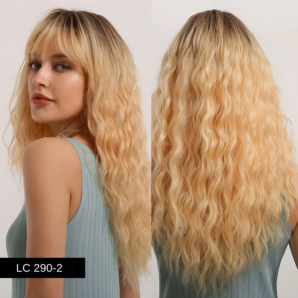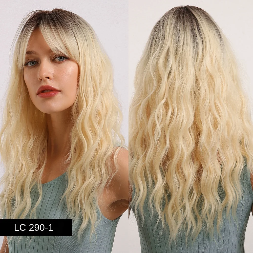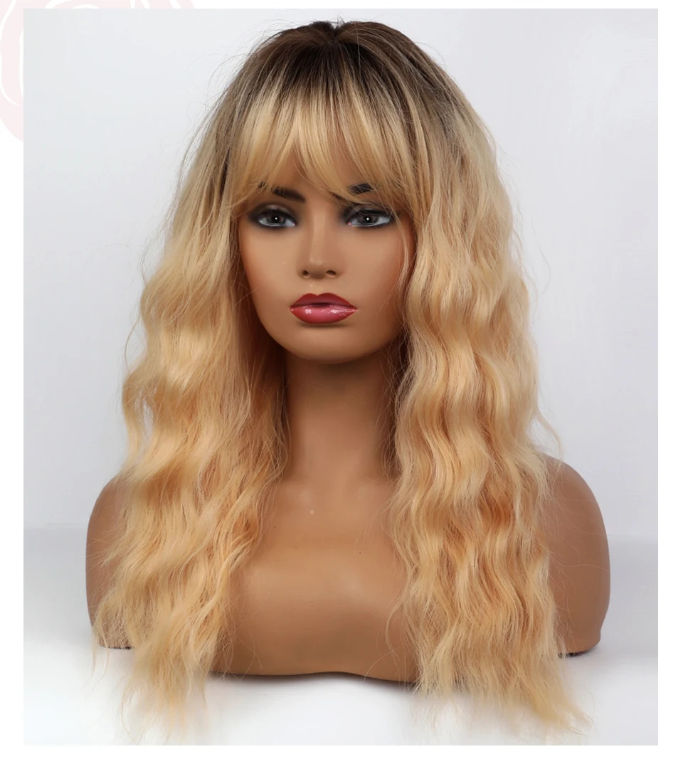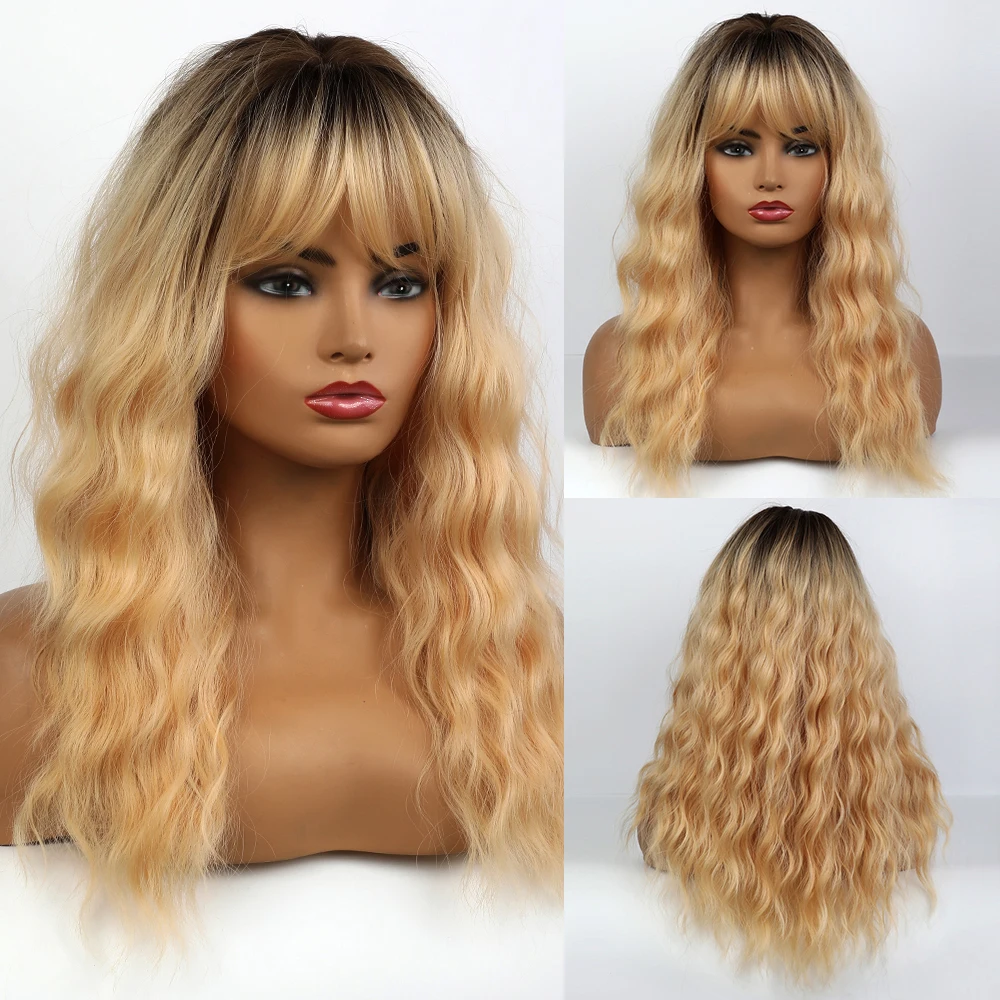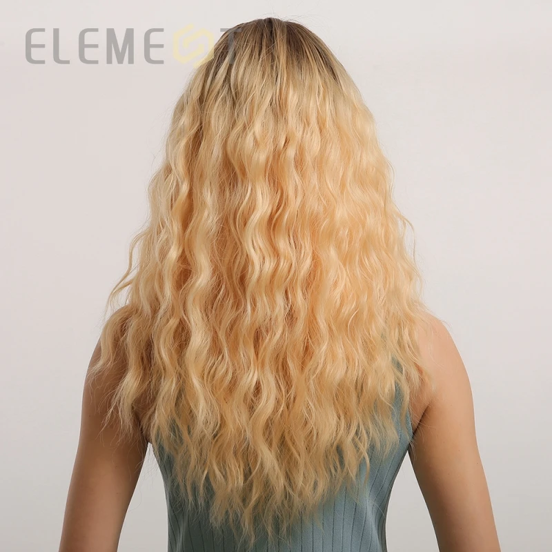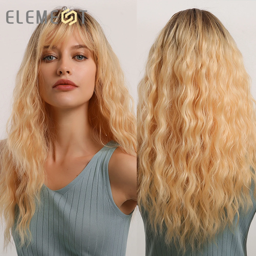 Длинные волнистые синтетические волосы Element с эффектом омбре, светлые золотые парики с воздушной челкой для белых или черных женщин