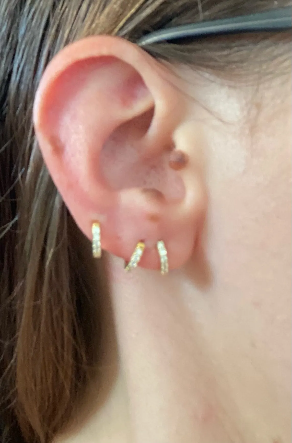 Нравится красиво, как на фото! ЦИРКОНИЕВЫЕ блестки. Кольца являются маленькими часами для правильного измерения, потому что у вас могут быть трудности с надеванием на ухо.