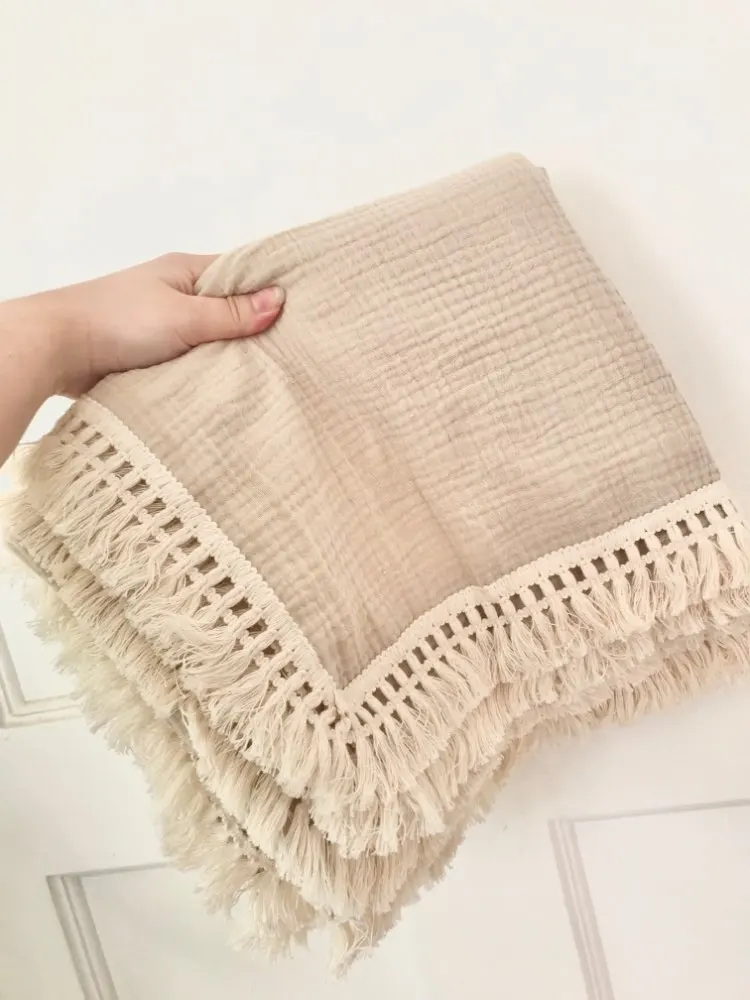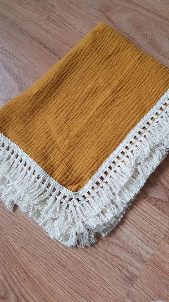 Хлопковые пеленки с кисточками, покрывало для детской коляски, муслиновое одеяло для пеленания, одеяло для новорожденных, банное Марлевое муслиновое одеяло
