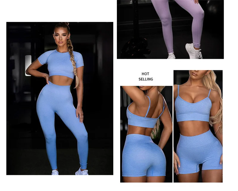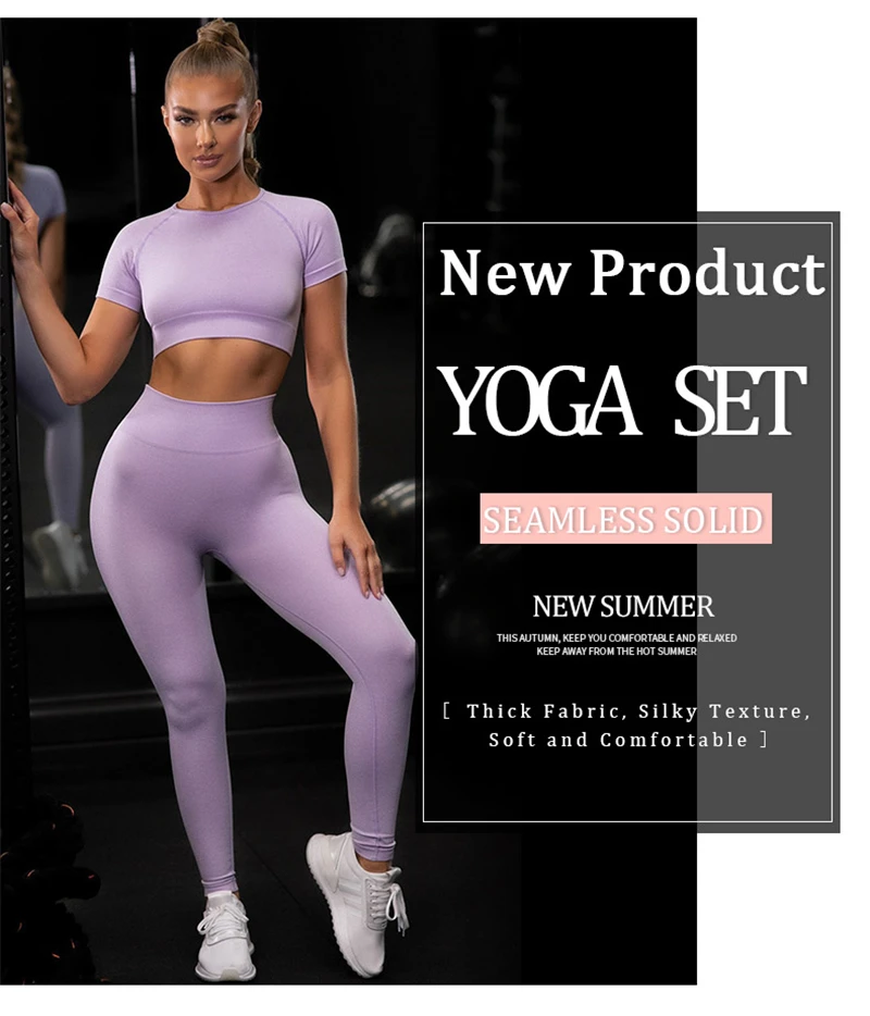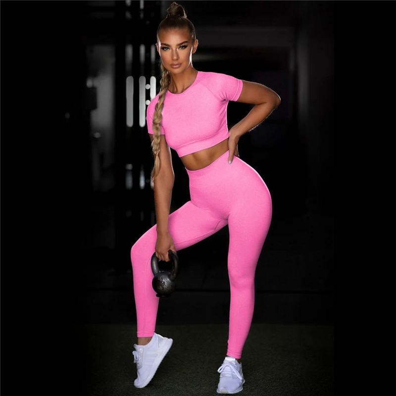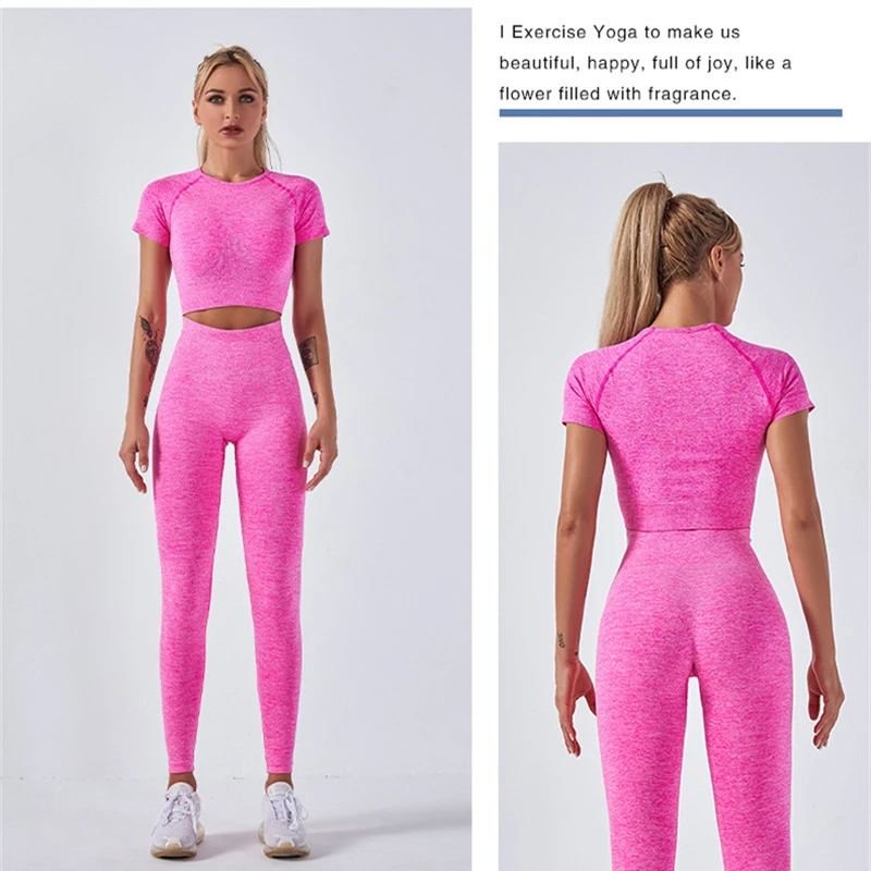 Комплект спортивный женский бесшовный из 2 предметов, укороченный топ и футболка, спортивные шорты, спортивный костюм для йоги, тренировок, активного отдыха, комплекты для фитнеса и спортзала
