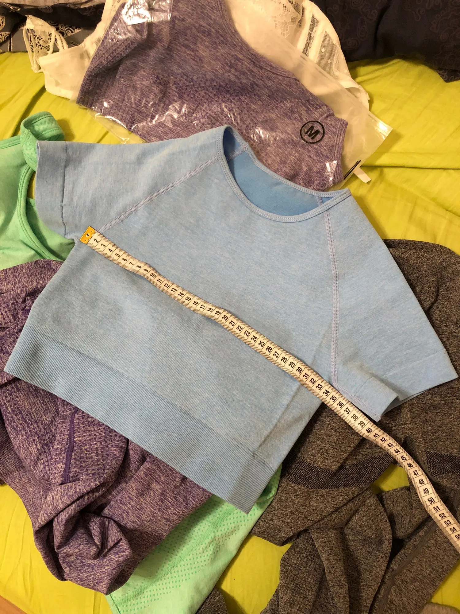 Я так долго читала отзывы и определялась с размером)) Угадала в итоге! Я спортивная девушка, взяла свой размер на параметры объем груди 84 см (померила на пушап в лифчике, где грудь 90 см - все тоже идеально сидит и никуда не сползает, на фото в нём), под грудью 74 см, талия 70 см, ношу 44 размер одежды, рост 159 см. Цвет ооочень красивый, холодный небесно-голубой, ткань плотная, тянется в меру, не просвечивает, рукава не топорщатся, меньше бы не взяла, да и больше не нужно) У меня много костюмов из разных магазинов, этот топ отличного качества, есть с чем сравнить) Надеюсь, мой отзыв кому-то будет полезен) Возьму ещё в других цветах, спасибо магазину)