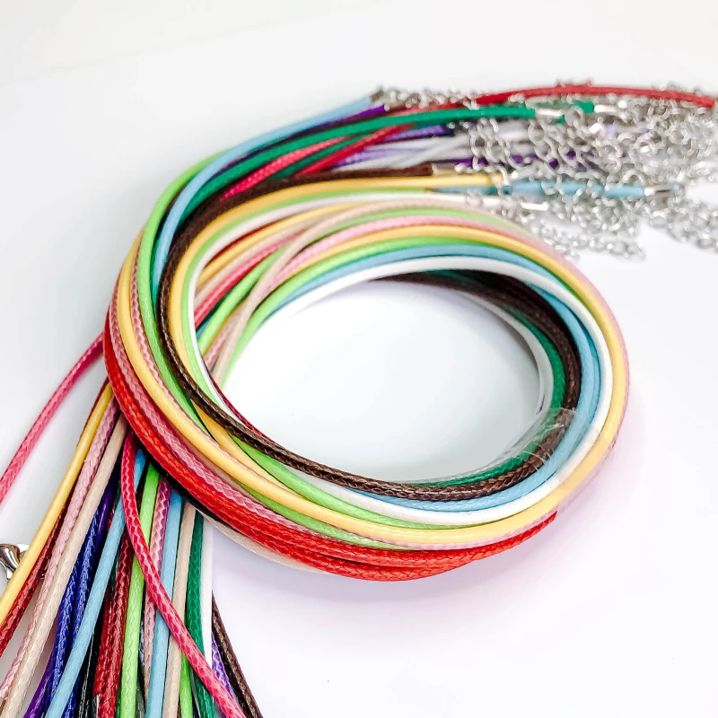 Застежка-карабин из кожаного шнура ручной работы, регулируемая Цепочка с подвесками, ожерелье, шармы для ювелирных изделий, 20 шт.лот, 50 см