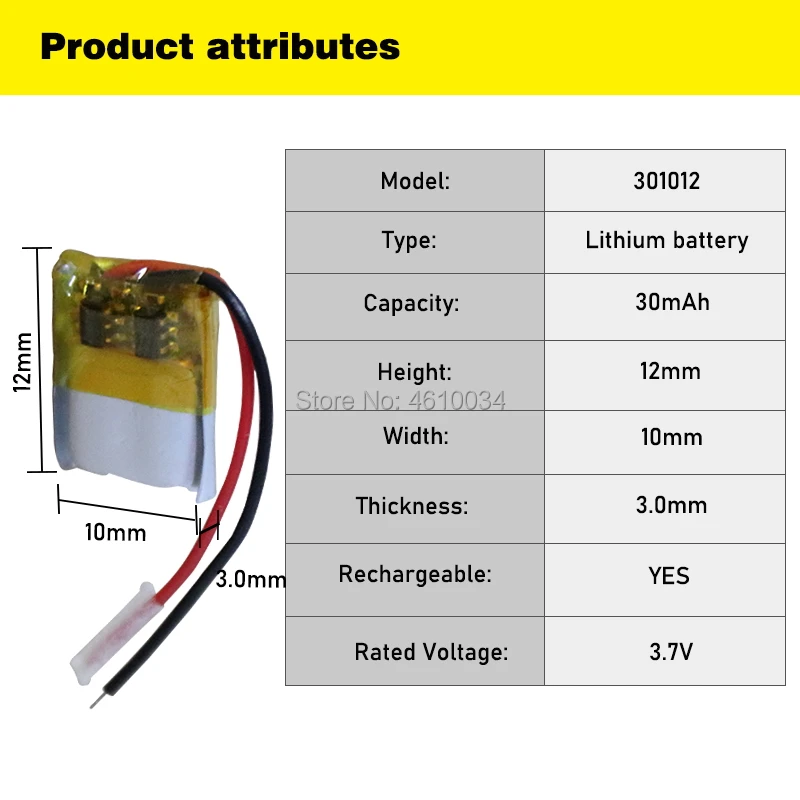 Перезаряжаемый литий-полимерный аккумулятор 301012 3,7 в 30 мАч для bluetooth гарнитуры наушников Mp3 динамика мыши рекордера