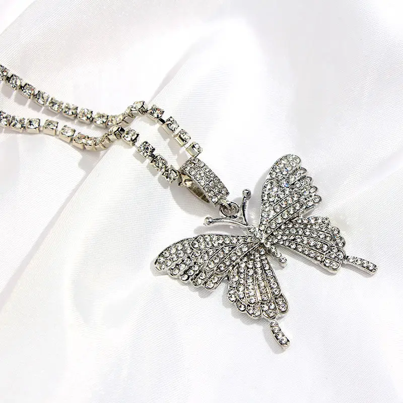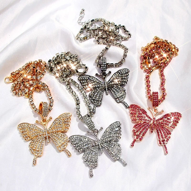 Роскошное блестящее ожерелье с подвеской в виде бабочки с кристалла...