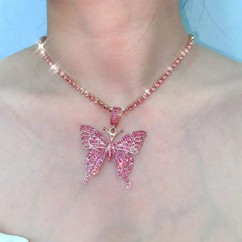 Boho Charm Red White Rhinestone Butterfly Pendant Necklaces Crystal...