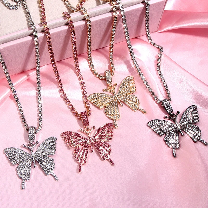 Женское колье с кристаллами Flatfoosie, модное ожерелье с подвеской в виде бабочки, в стиле рок, 4 цвета, украшение для вечеринки, ювелирное изделие в подарок