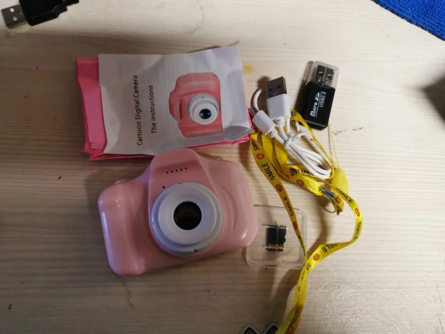 Он прибыл быстро и в отличном состоянии. Заказал с картой sd. Они включают в себя usb-ручку для передачи фотографий. Поставляется с usb-кабелем, но без зарядного устройства. Он служит мобильным телефоном. Камера очень маленькая, это игрушка, не ожидайте хорошего качества на фотографиях. Рекомендуемая покупка для детей.