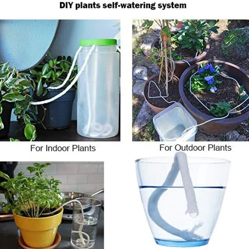 DIY автоматическая система полива отпускного орошения: Поместите один конец к источнику воды, этот фитиль для полива будет сосать воду на другой конец автоматически, И капать в течение 15 минут (практическое время зависит от длины веревки, которую вы отрезали; Перед использованием этот Хлопковый Канат полностью замачивается в воде, затем он мгновенно капнет). Легко сделать DIY автоматическое устройство орошения системы, поможет вам заботиться о ваших растениях, пока вы находитесь вдали от дома или когда вы идете на улицу или в бизнесе.