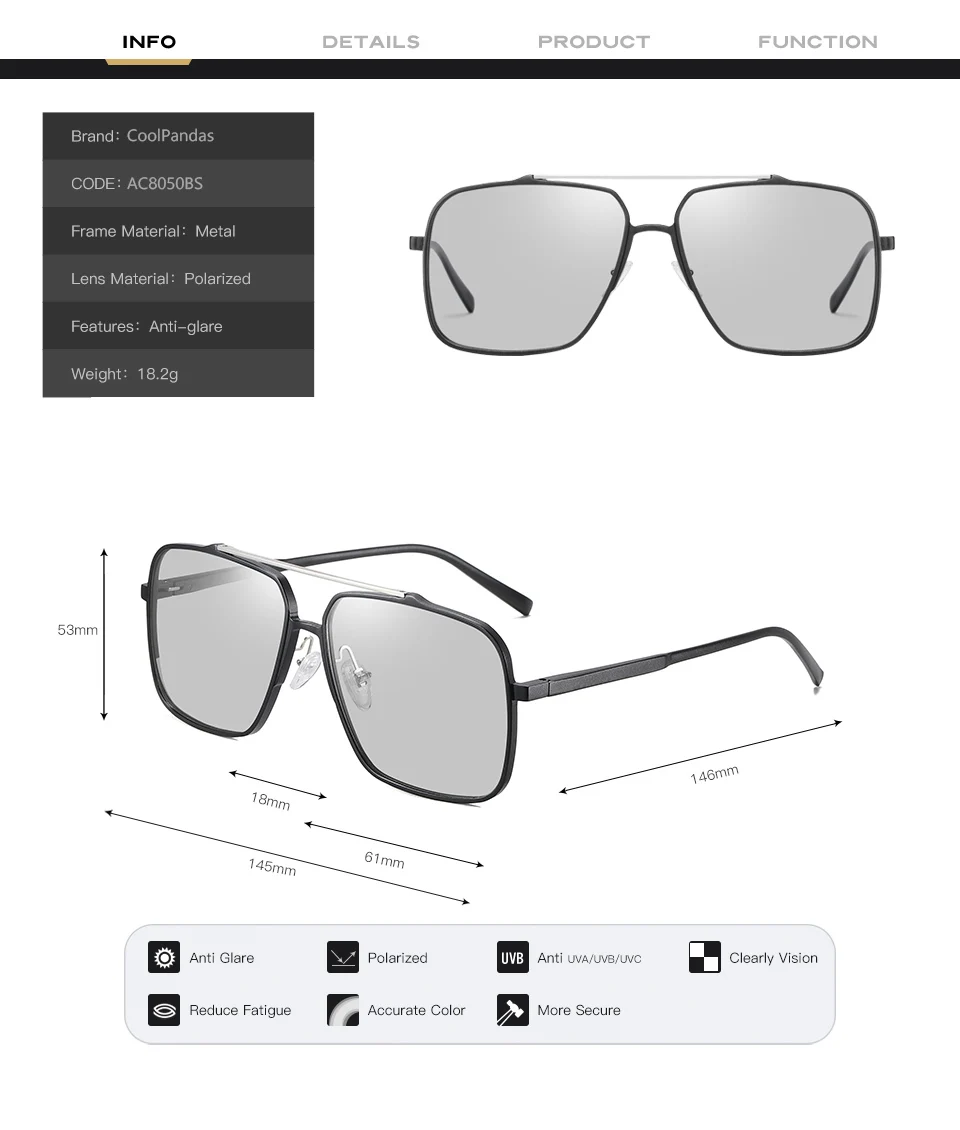 CoolPandas высококачественные складные фотохромные солнцезащитные о...