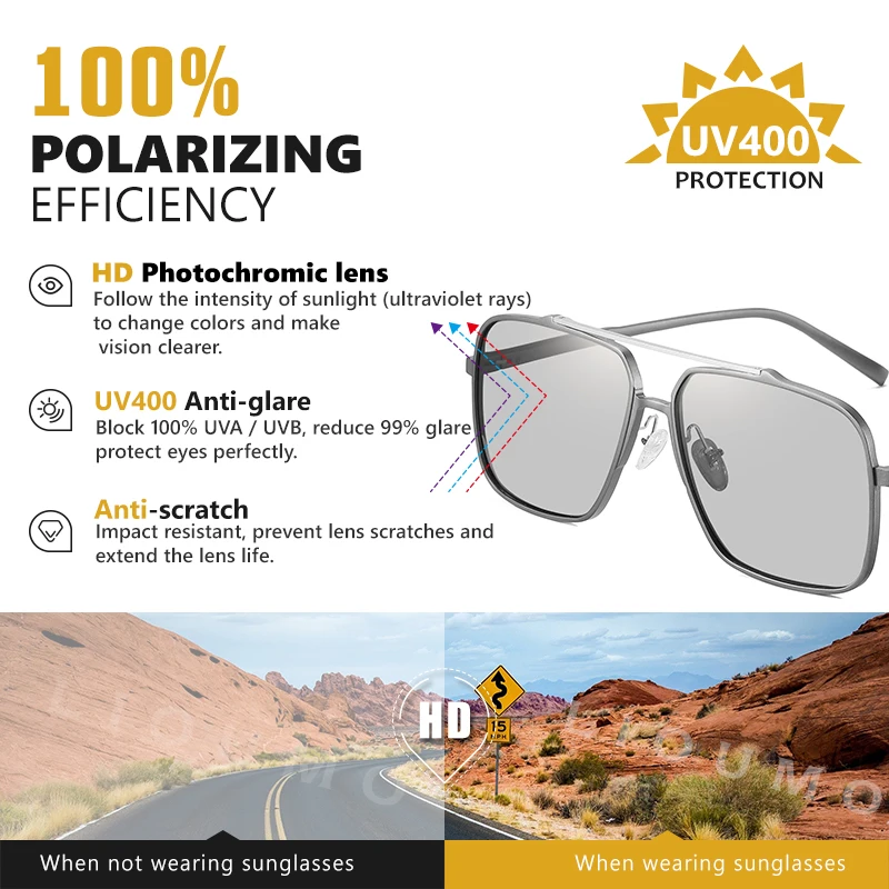 2020 алюминиево-магниевые Квадратные Солнцезащитные очки фотохромные Мужские Женские Мужские поляризационные солнцезащитные очки для вождения UV400 Солнцезащитные очки для мужчин