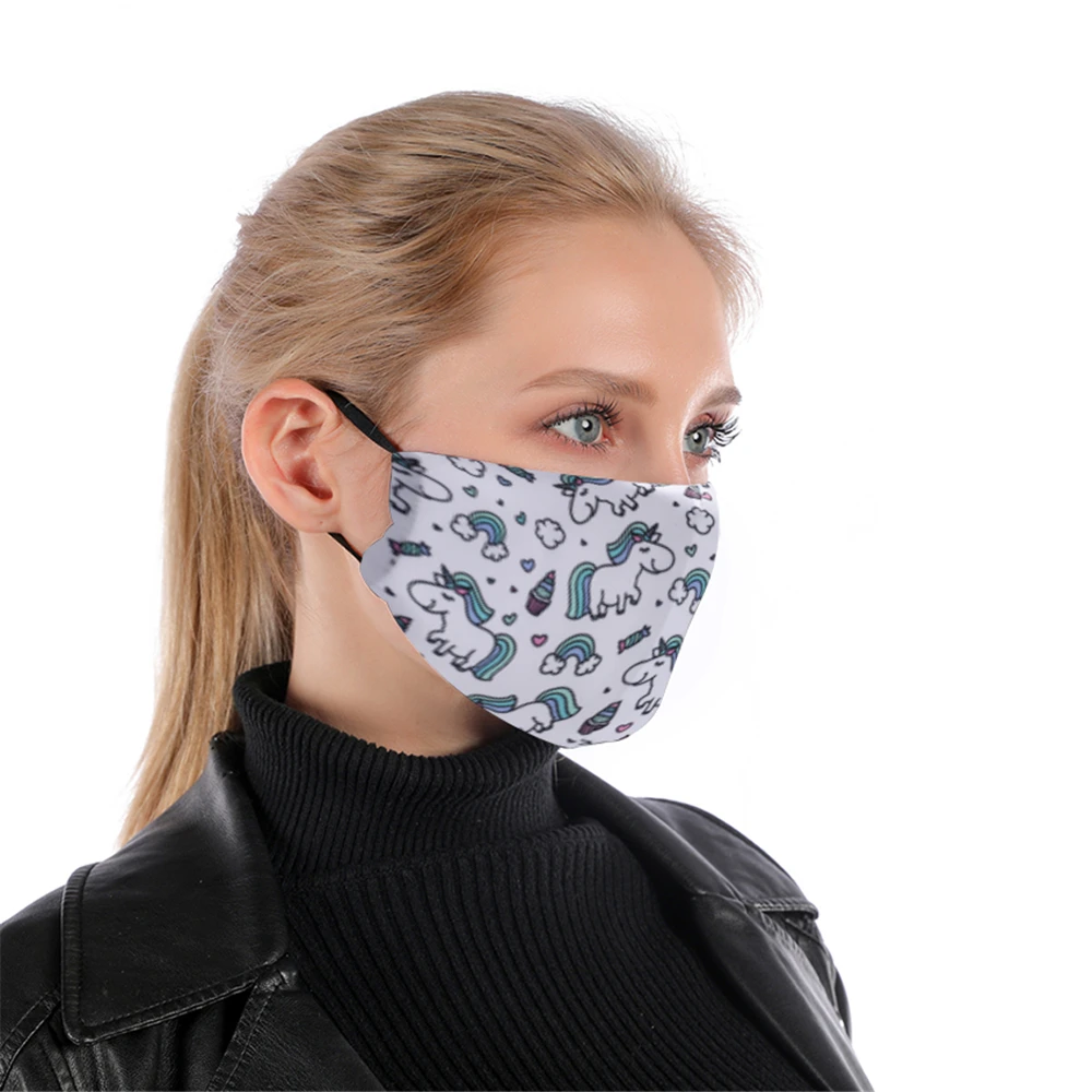 Стильный смываемая маска для лица с фильтром маска с принтом белого единорога регулируемый плечевой ремень Многоразовые Для женщин маска для лица Маска Анти Ветрозащитная маска