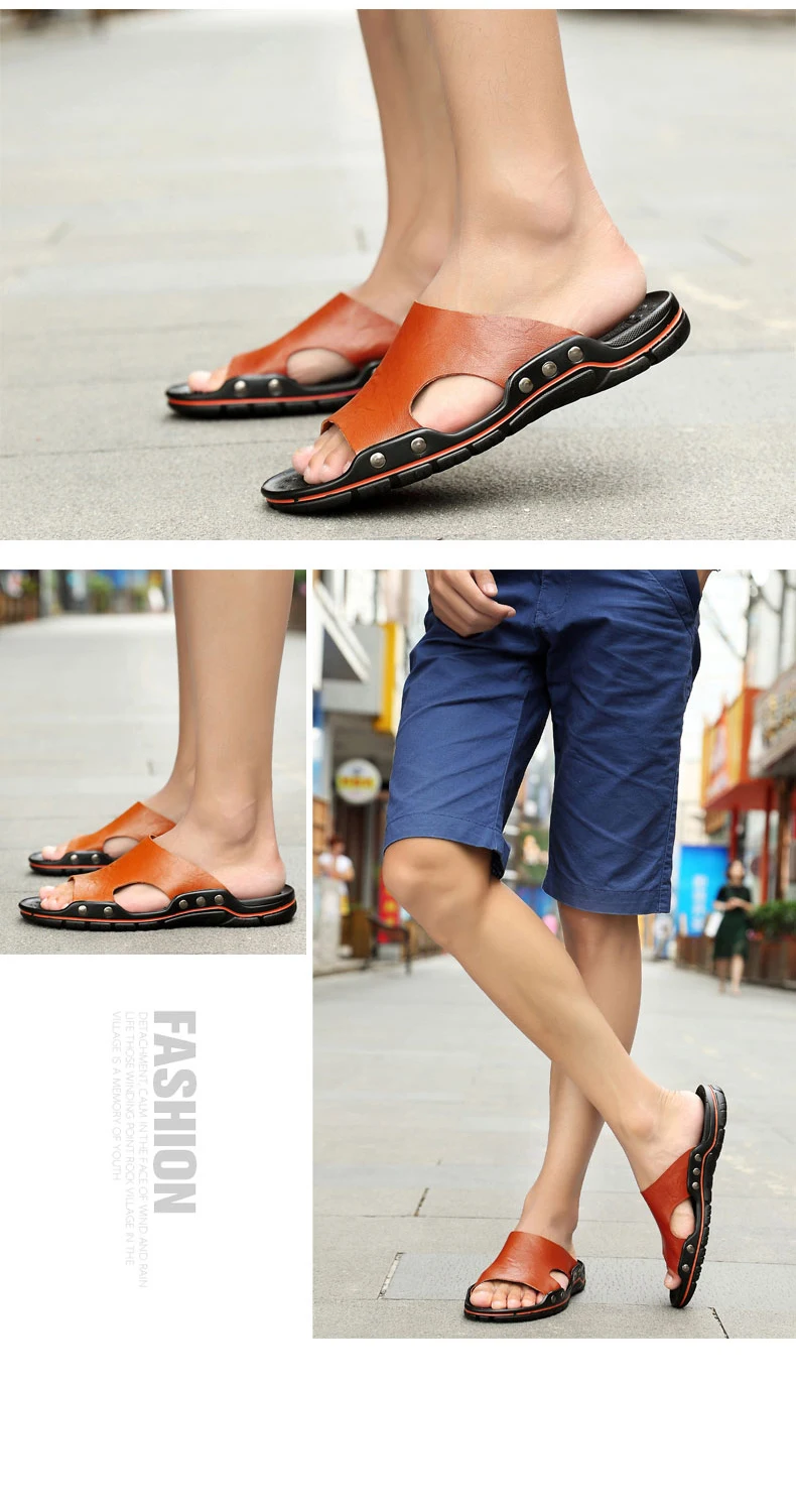 Сланцы из натуральной кожи для мужчин и женщин, летние Нескользящие...