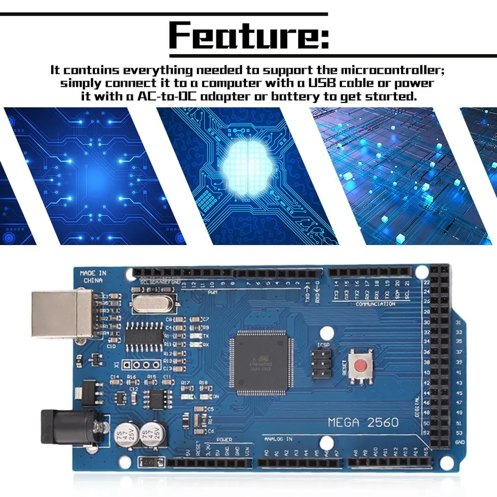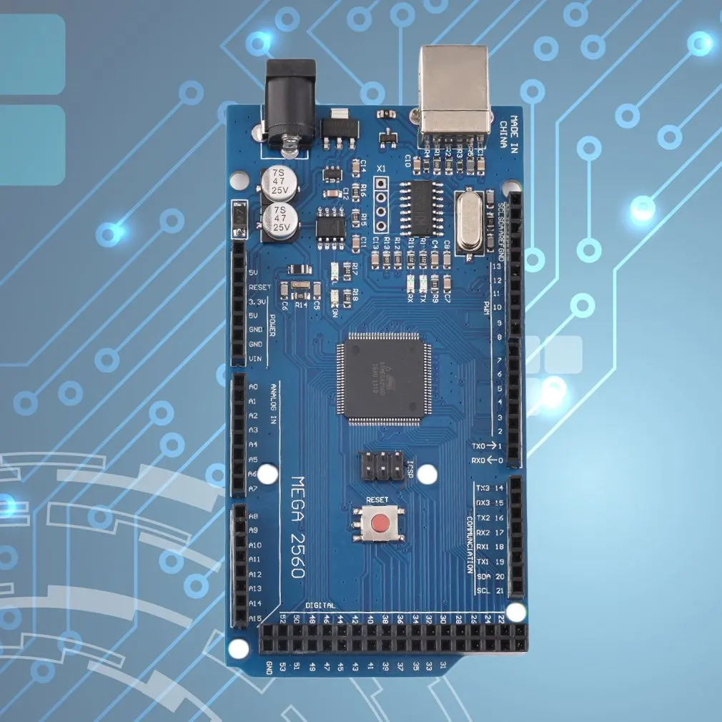 Особенности:Мега совместим с большинством экранов, предназначенных для Duemilanove или Diecimila.Мега 2560 является обновлением для мега, который он заменяет.Mega2560 отличается от всех предыдущих плат тем, что не использует чип драйвера FTDI USB-to-serial. Вместо этого он оснащен ATmega16U2 (ATmega8U2 в версии 1 и версии 2), запрограммирован как конвертер USB-to-serial.Версия 2 платы Mega2560 имеет резистор, вытягивающий линию 8U2 HWB на землю, что делает его легче поместить в режим DFU.Описание:Mega 2560-это плата микроконтроллера, основанная на ATmega2560 (спецификации). Он имеет 54 цифровых входа/выхода контактов (из которых 15 могут быть использованы в качестве PWM выходов), 16 аналоговых входов, 4 UARTs (аппаратные последовательные порты), 16 МГц кристаллический осциллятор, USB соединение, разъем питания, заголовок ICSP и кнопка сброса.Он содержит все необходимое для поддержки микроконтроллера; Просто подключите его к компьютеру с помощью usb-кабеля или включите его с адаптером AC-to-DC или батареей, чтобы начать работу.Пересмотр 3 платы имеет следующие новые функции:1,0 pinout: добавлены SDA и SCL контакты, которые находятся рядом с AREF pin и двумя другими новыми контактами, размещенными рядом с pin RESET, IOREF, который позволяет экранам адаптироваться к напряжению, предоставляемому от платы. В будущем, экраны будут совместимы как с платой, которые используют AVR, которые работают с 5V и из-за того, что работать с 3,3 V. Второй-это не подключенный штифт, который предназначен для будущих целей.Более сильная схема сброса.Atmega 16U2 заменяет 8U2.Схема, справочный дизайн и сопоставление контактовФайлы орла: -mega2560_R3-reference-design.zipСхема: -mega2560_R3-schematic.pdfСопоставление контактов: страница PinMap2560Характеристики:Микроконтроллер ATmega2560Рабочее напряжение: 5 ВВходное напряжение (рекомендуется): 7-12 ВВходное напряжение (лимиты) : 6-20 вЦифровые контакты ввода/вывода: 54 (из которых 15 обеспечивают выход ШИМ)Аналоговые входные контакты: 16Ток постоянного тока на I/O Pin: 40 мАПостоянный ток для 3,3 V Pin-код: 50 мАФлэш-память: 256 Кб, из которых 8 КБ используется загрузчикомSRAM: 8 КБEEPROM: 4 КбЧастота часов: 12 МГцМощностьМега может питаться через usb-соединение или с внешним источником питания. Источник питания выбирается автоматическиВнешний (не-USB) Источник питания может быть либо от адаптера переменного тока в постоянный ток (настенное бородавление), либо от аккумулятора. Адаптер может быть подключен подключив в 2,1 мм Центр-положительный штепсельную вилку в Комиссии заглушка для разъема питания. Провода от батареи могут быть вставлены в гнезда Gnd и vin-штыревые разъемы разъема питания.Плата может работать на внешнем питании от 6 до 20 вольт. Однако при поставке менее 7 в штырь 5 В может поставляться менее пяти вольт, и плата может быть нестабильной. При использовании более 12 В регулятор напряжения может перегреваться и повредить доску. Рекомендуемый диапазон от 7 до 12 вольт.Посылка включает в себя:1 x ATmega2560-16AU доска1 х USB кабель