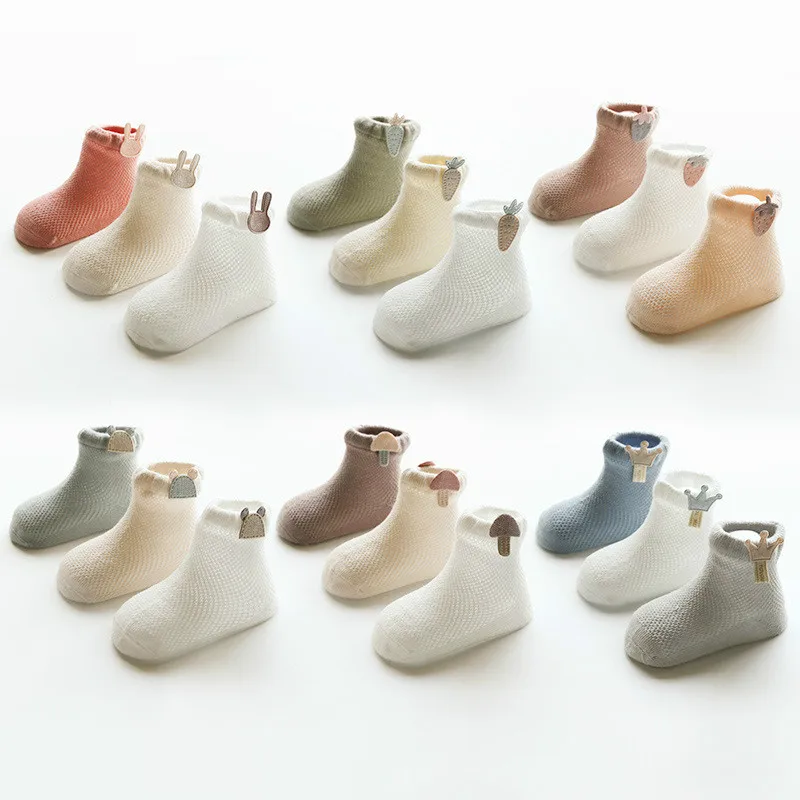 3 парлот дышащая Детские носки; Сезон лето-осень детское платье из ткани в сеточку для дома с антискользящим покрытием; Нескользящие носки-тапочки носки для маленьких мальчиков и девочек хлопковые Карамельный цвет носки до лодыжки
