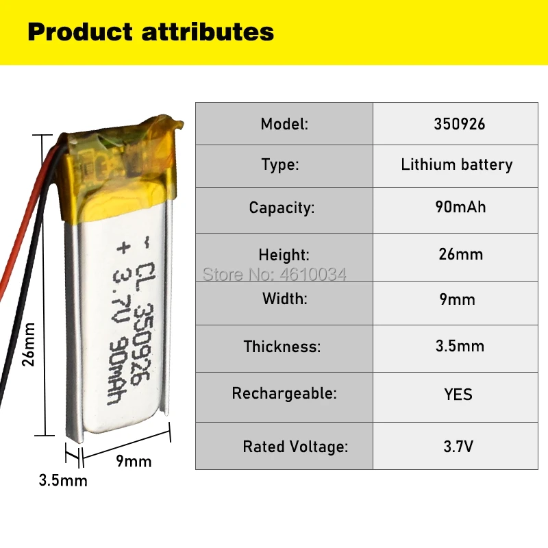 Литий-полимерный литий-ионный аккумулятор 90 мАч 3,7 в 350926 для M...