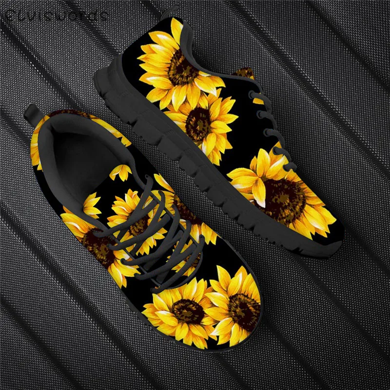 Кроссовки ELVISWORDS Женские повседневные, дышащие сетчатые сникерсы с 3D принтом подсолнухов, плоская подошва, классические