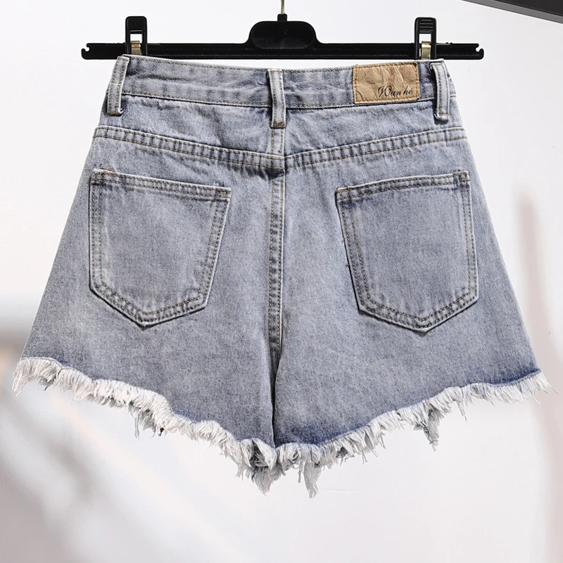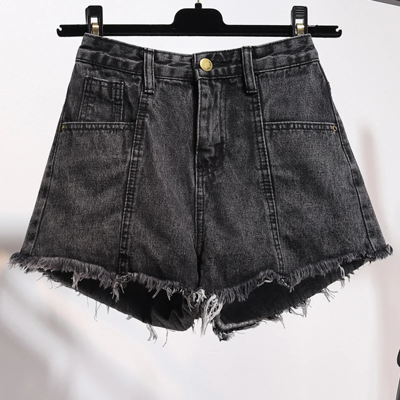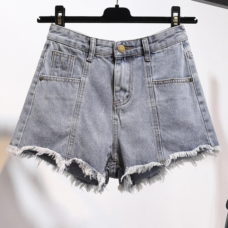 Новые летние модные джинсовые шорты с завышенной талией, женские корейские свободные женские джинсы с необработанными краями, повседневные широкие шорты с карманами
