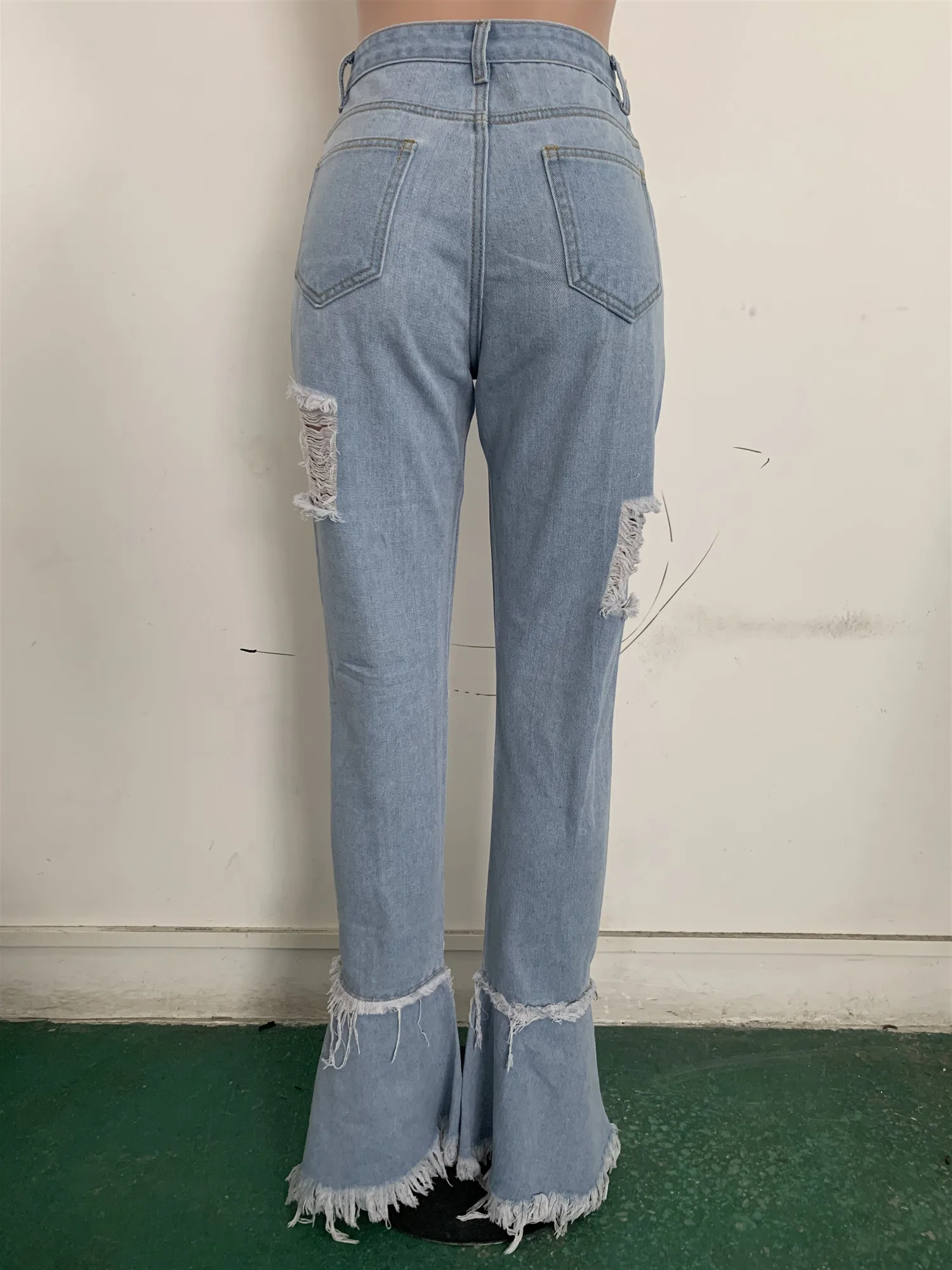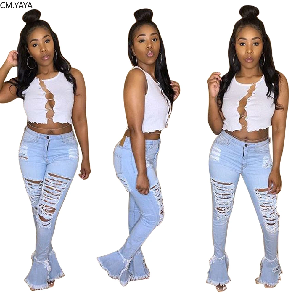 Женские джинсовые брюки в стиле ретро, однотонные Соблазнительные рваные расклешенные брюки с дырками, узкие женские брюки с высокой талией, лето 2020