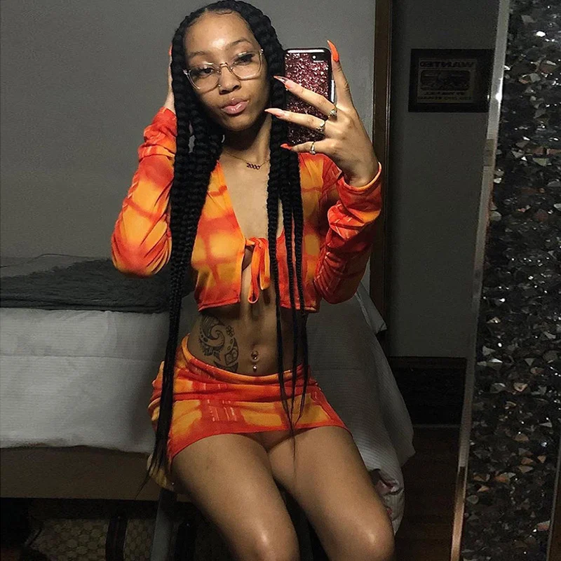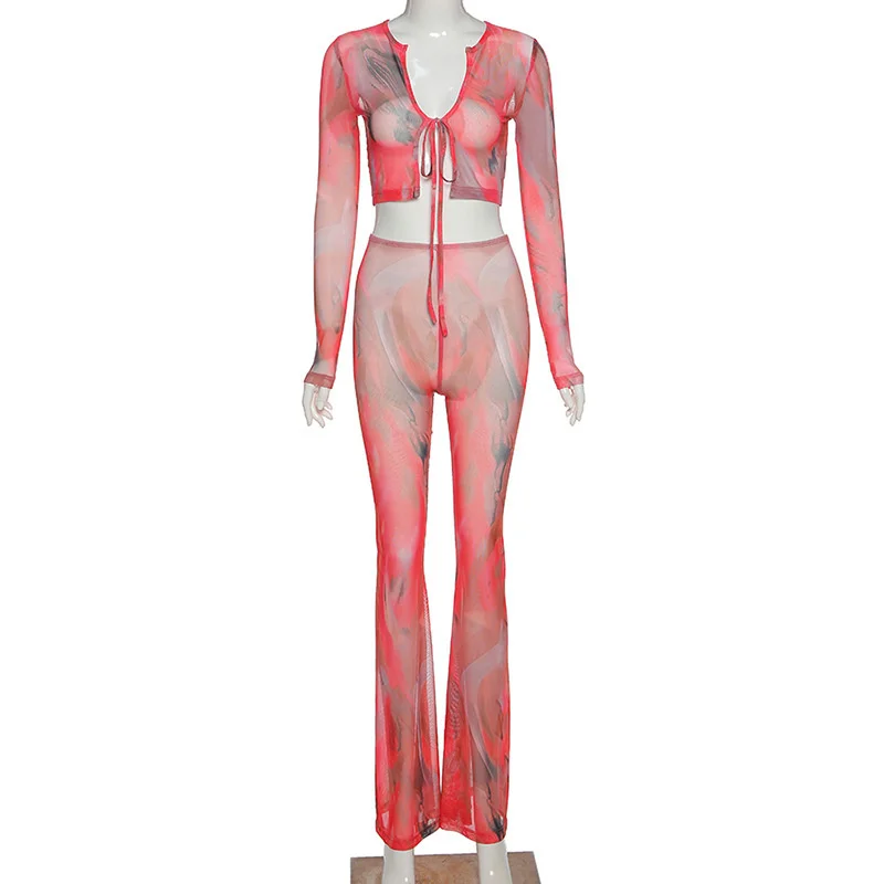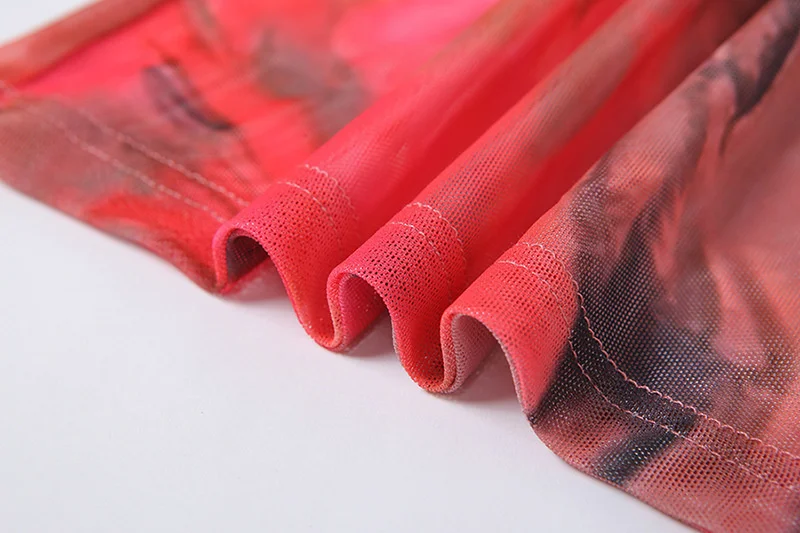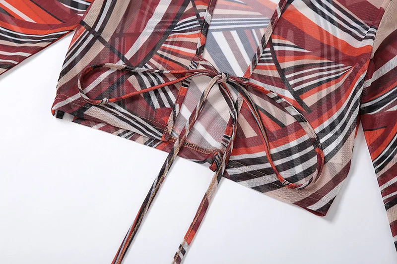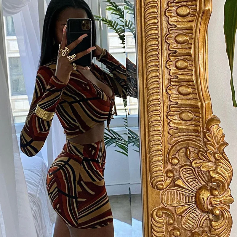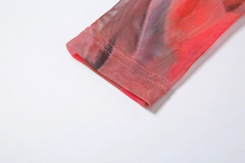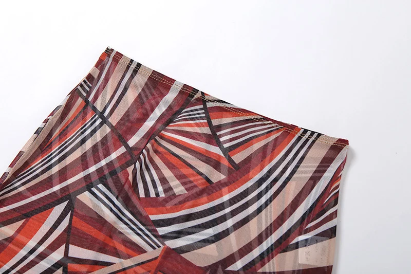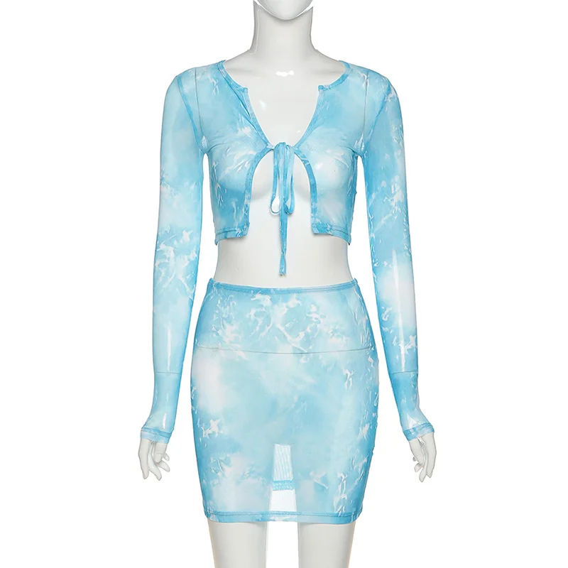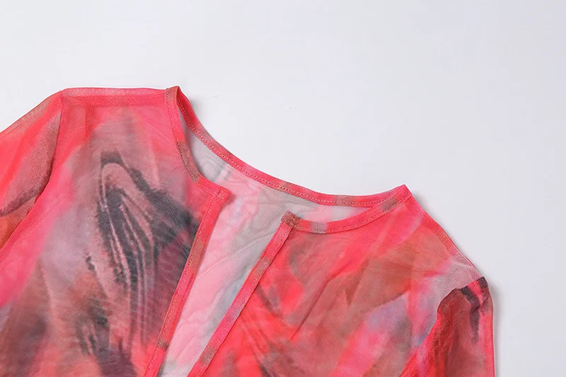 Женский сетчатый комплект из двух предметов Giyu с принтом, осень 2021, сексуальный прозрачный комплект из 2 предметов, кружевная Клубная юбка с глубоким V-образным вырезом, наряды для вечеринки