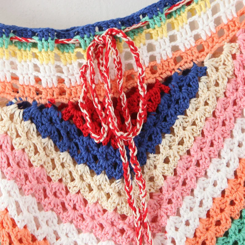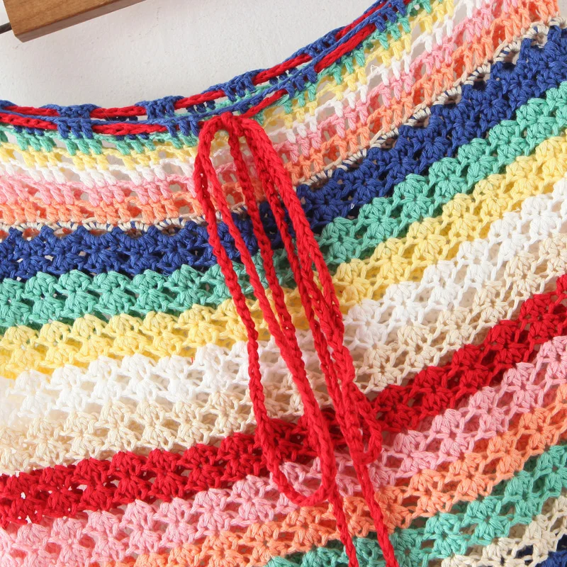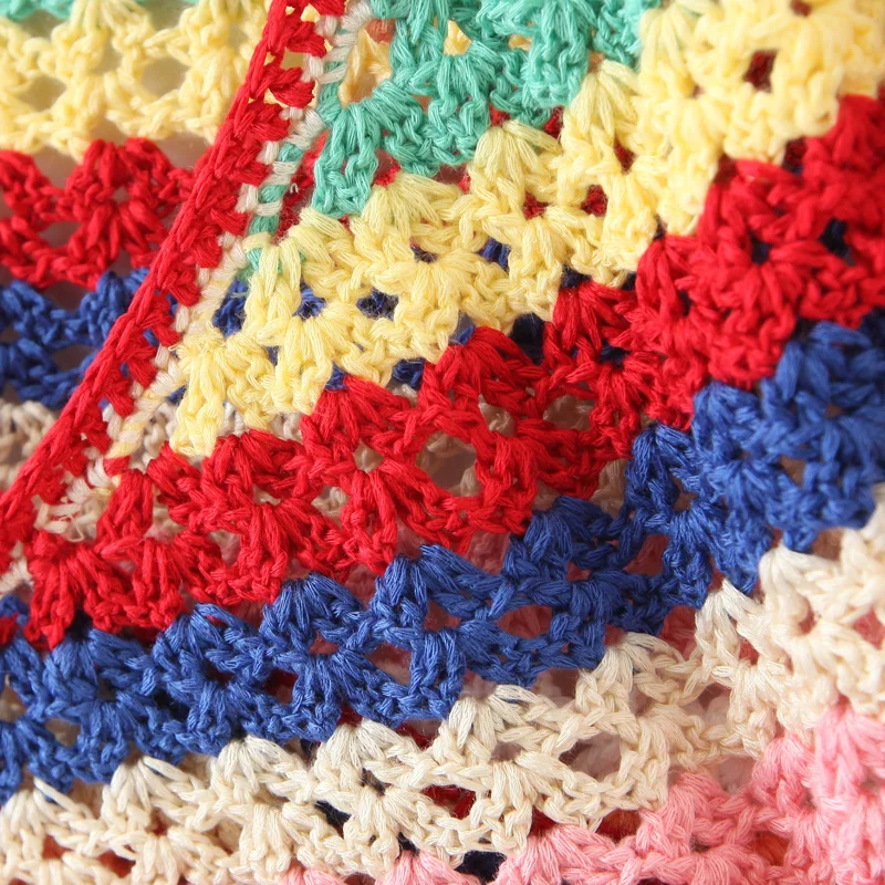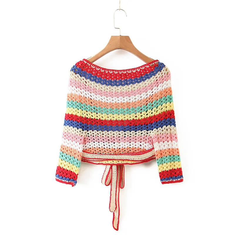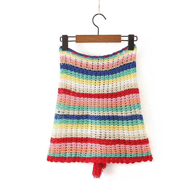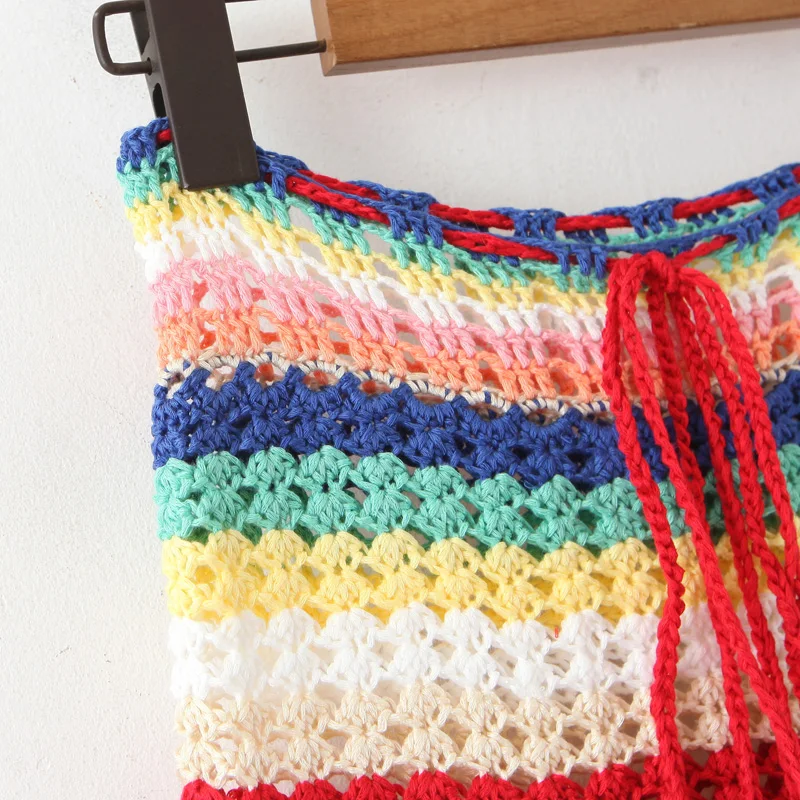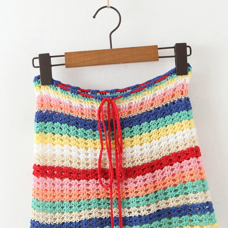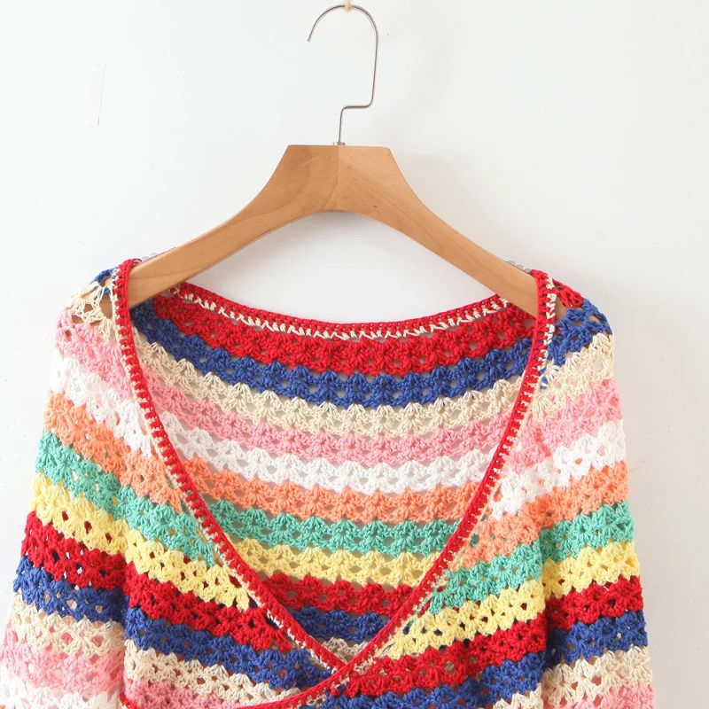 Женский вязаный кардиган в стиле бохо, разноцветный полосатый вязаный крючком кардиган, свитер, короткие шорты с коротким рукавом, комплект из 2 предметов, 2020