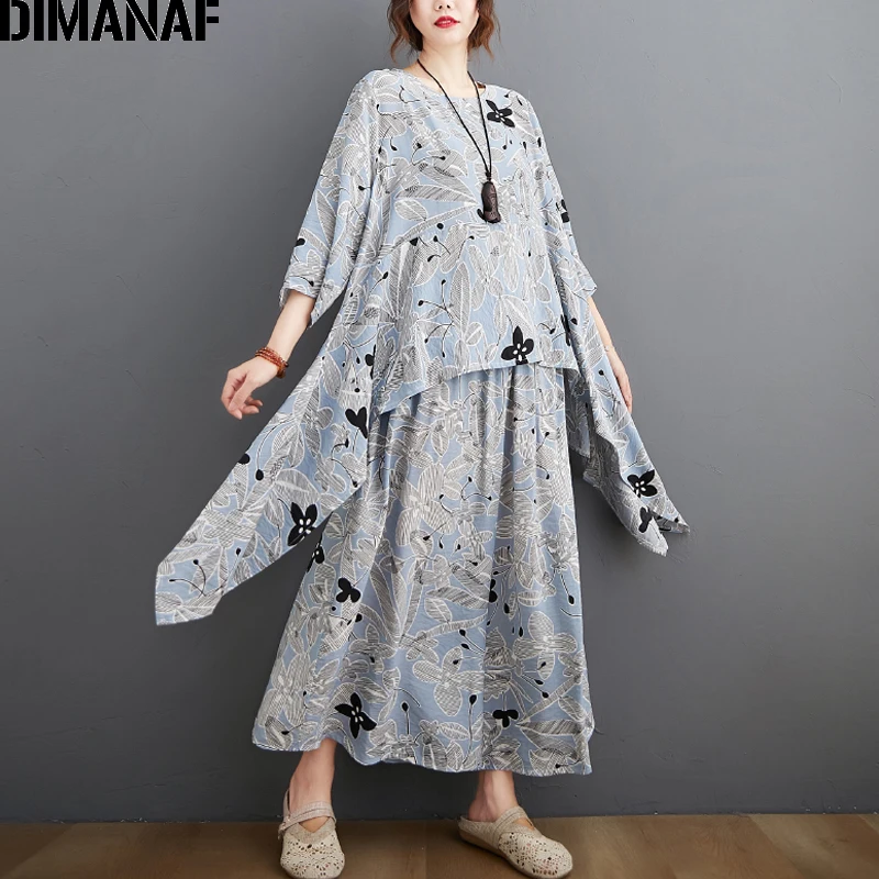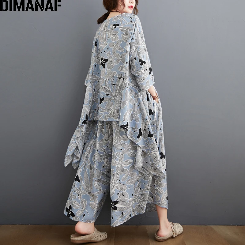 Женский винтажный костюм DIMANAF, комплект из двух предметов, топ и рубашка с принтом, лето размера плюс