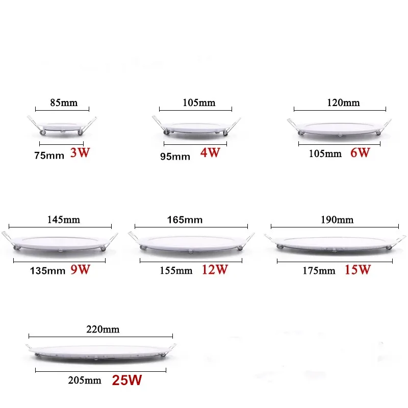 3 Вт 4 Вт 6 Вт 9 Вт 12 Вт 15 Вт 25 Вт теплый белый/натуральный белый/холодный белый Светодиодный Потолочный встраиваемый светильник/тонкий круглый панельный светильник