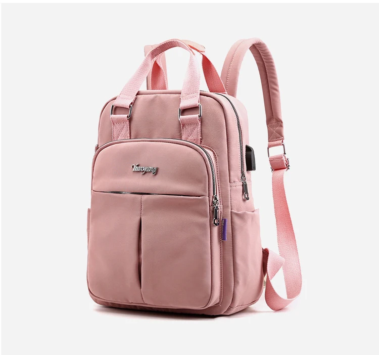 Женский рюкзак с высокой ручкой, вместительный Повседневный дорожный ранец с USB-зарядкой, Студенческая школьная сумка в стиле преппи для ноутбука 14 дюймов