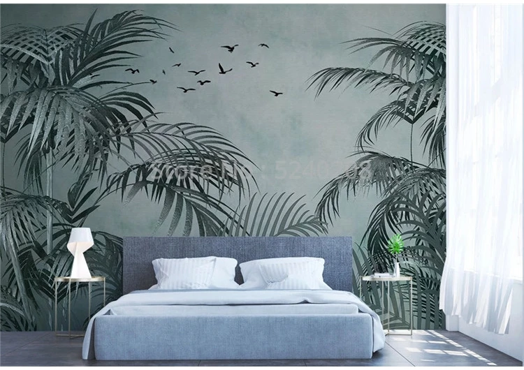 Фотообои на заказ, ручная роспись, винтажные тропические растения, ...
