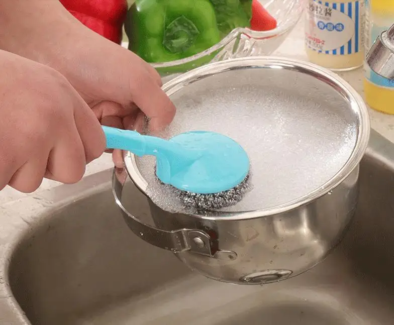 Шариковая щетка из нержавеющей стали, щетка для чистки кухонной посуды, очиститель для посуды, средство для удаления ржавчины, прочные инструменты с ручкой