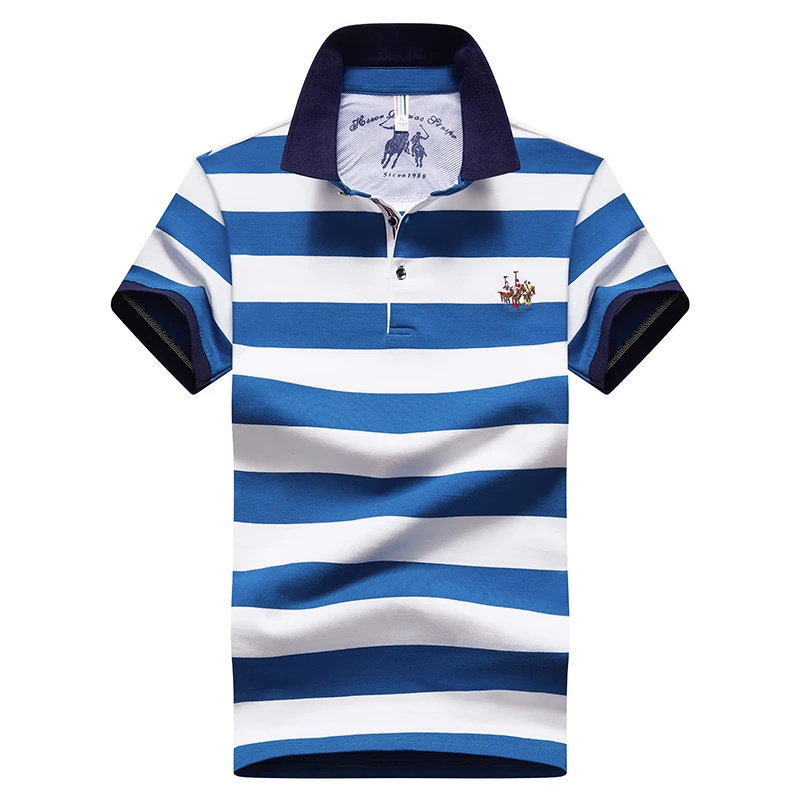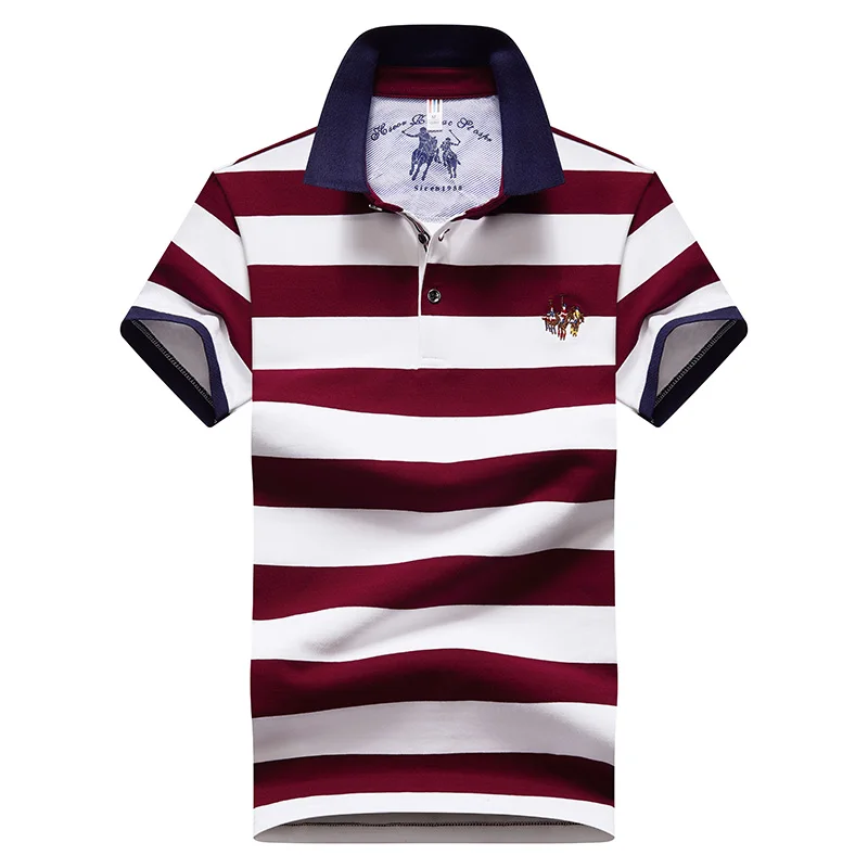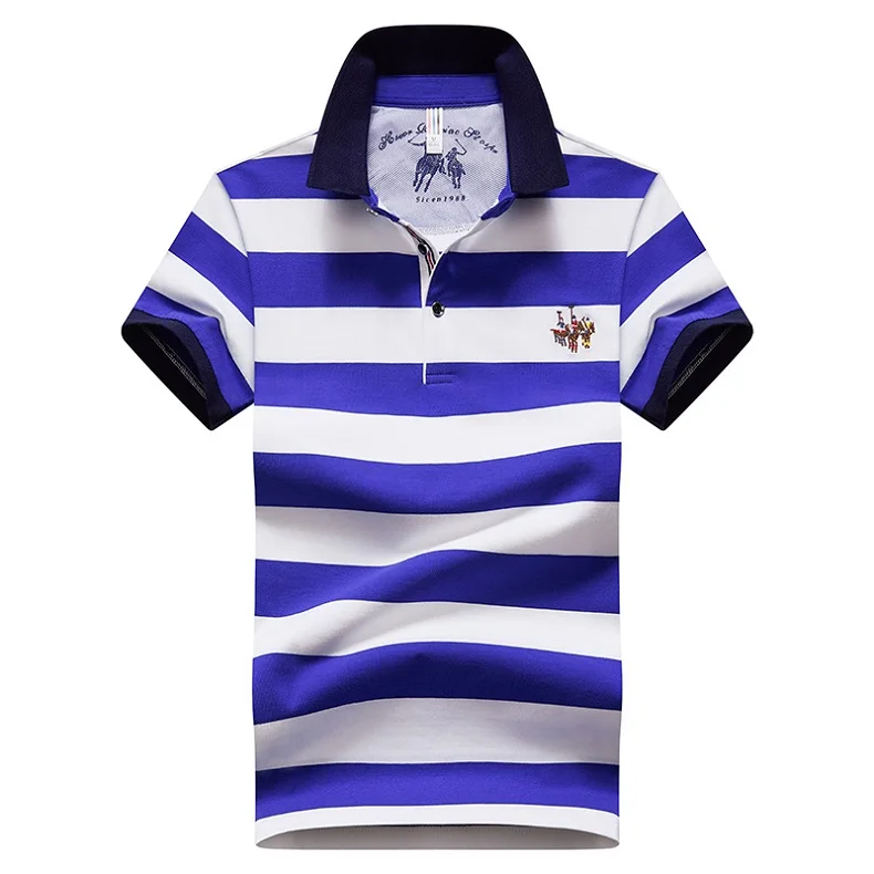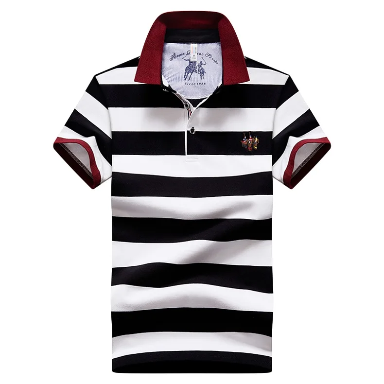 Мужская рубашка-поло с коротким рукавом, в полоску