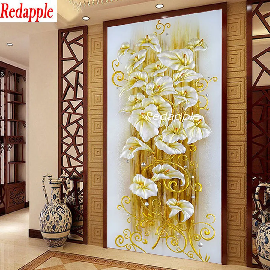 Цветочная Золотая Лилия цветочный узор полная дрель 5D DIY Алмазная картина вышивка крестиком Стразы мозаика большой домашний декор