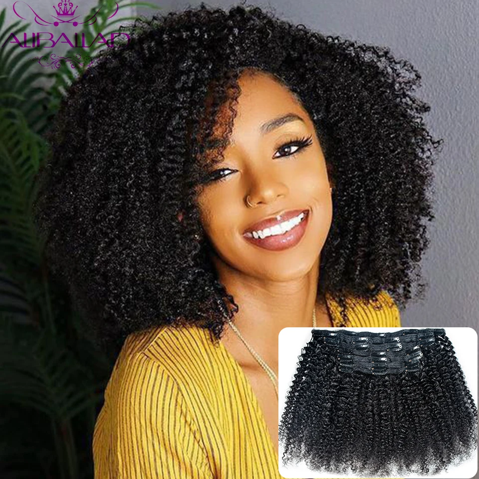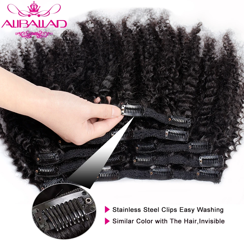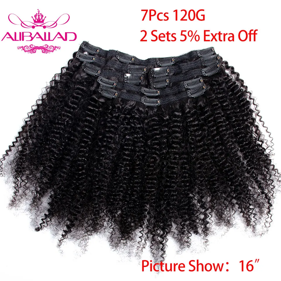 Человеческие волосы для наращивания на заколках, монгольские афро вьющиеся волосы, 4B 4C Реми, человеческие волосы для наращивания, 7 шт.компл.набор, 120 г