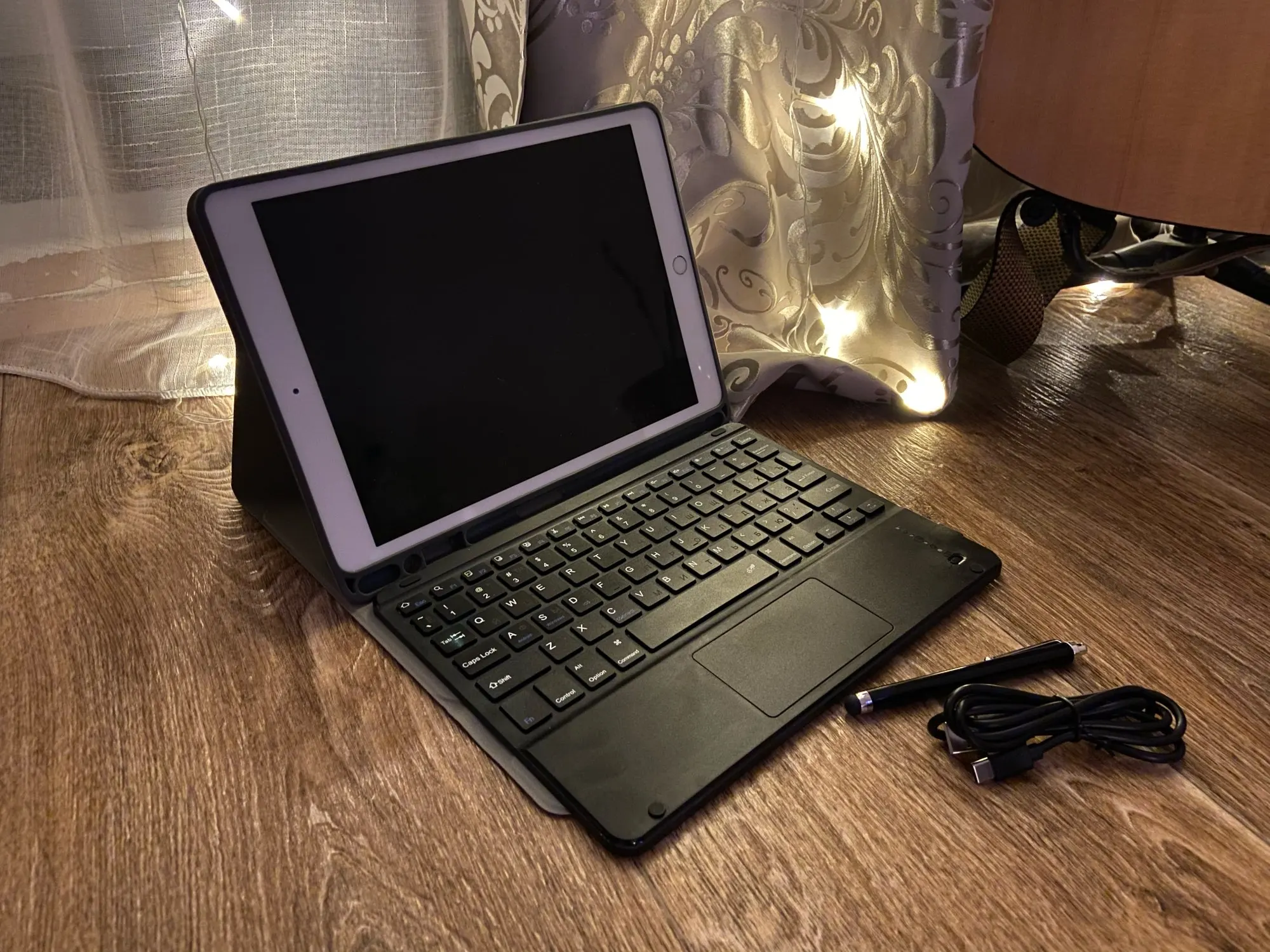 Я напишу очень развёрнутый отзыв! Во первых спасибо продавцу за быструю доставку. Упакован хорошо, надежно. Все целое без изъянов. Чехол: внутри прорезиненный, снаружи как на фото. Тяжелый, сразу добавляет веса планшету. Громоздкий, так как расчитан и на планшет и на клавиатуру. Когда клавиатура не в чехле есть воздух и ощущение что чего-то не хватает. Магниты: магниты слабоваты. Может это только у меня но закрывается планшет со слабым притяжением. Клавиатура держится слабо. Если поднять часть где должна лежать клавиатура она сразу отпадает. Клавиатура: тач пад очень чувствительный, прекрасно работает. Есть все скрол движения адаптированные в apple, сразу ощущение что работаешь на маке. К клавиатуре вопросов нет, легкая, кнопки работают отлично. Подсветка шикарная. На чехле есть место для Apple Pencil внизу, и продумана выемка для ручки во время зарядки. Но кнопка включения и выключение не продумана и неудобно ее использовать. Чехол надежный