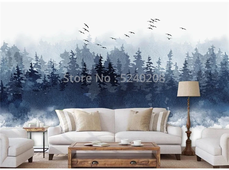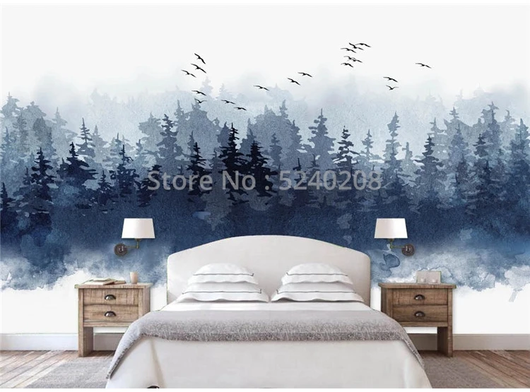 Самоклеящиеся обои на заказ, современные абстрактные обои, ручная роспись, Синяя фантазия, Лесной муральный, гостиная, обучение, лес, Fresco 3D наклейки