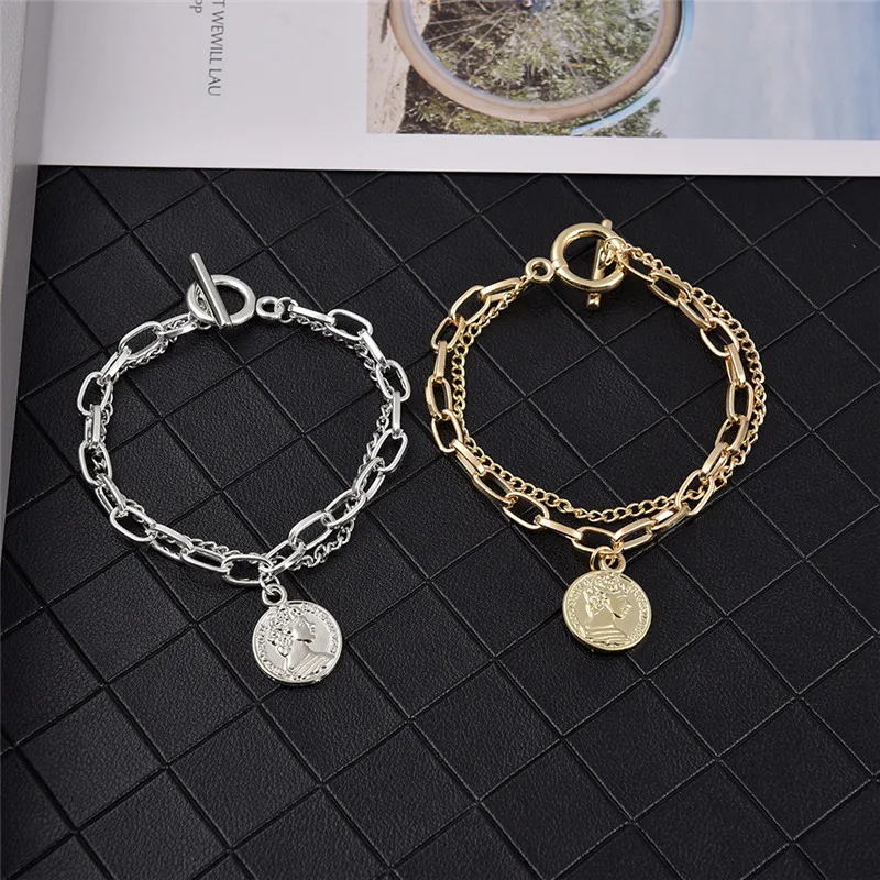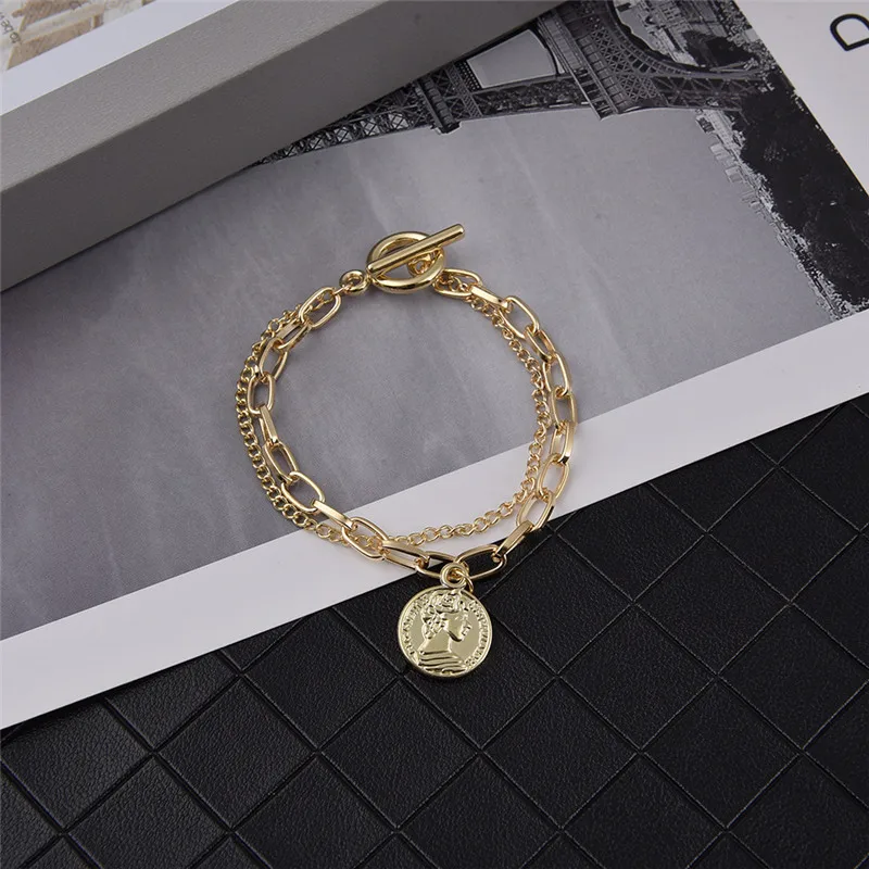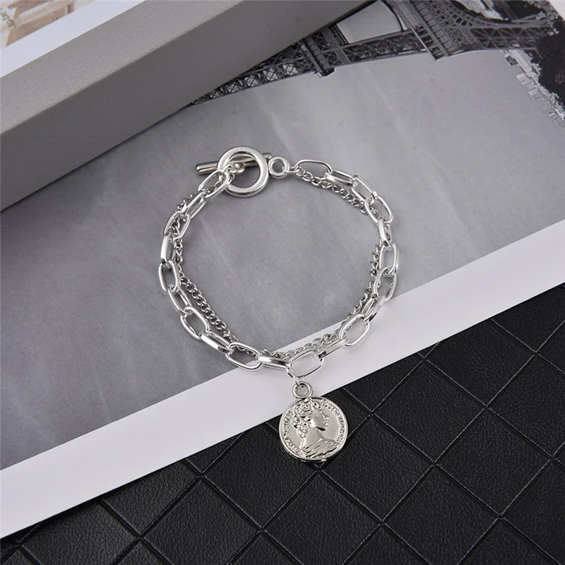 Bilandi панк хип-хоп Монета браслет ретро многослойная цепочка геом...