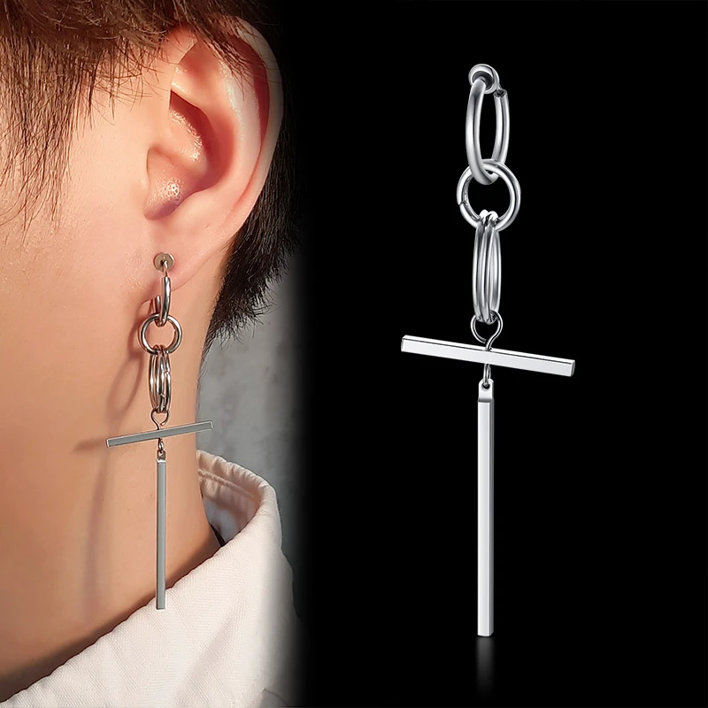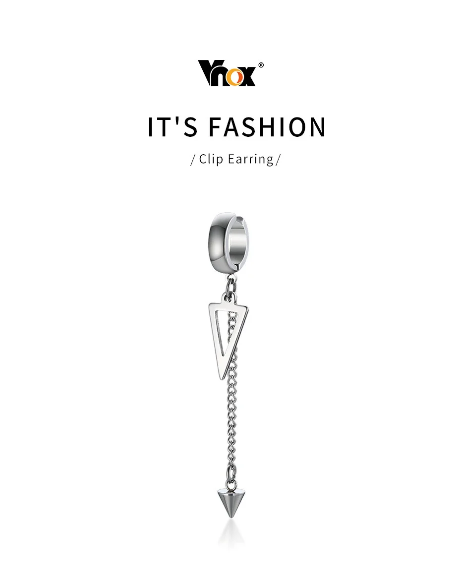 Клипсы Vnox мужские из нержавеющей стали, геометрические висячие серьги-подвески треугольника в стиле унисекс, аксессуар для ушей в стиле панк, 1 штука