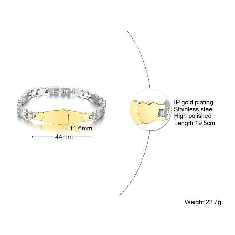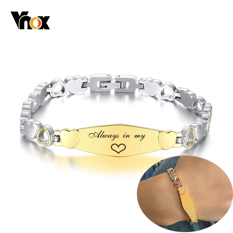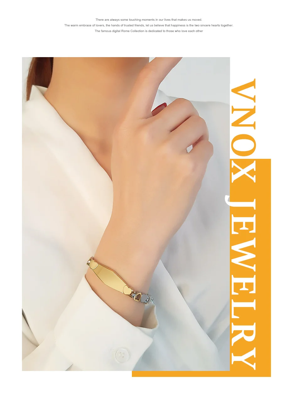 Vnox Персонализированная гравировка ID бар с сердечком цепи браслеты для женщин мужчин унисекс на заказ годовщина подарки ювелирные изделия