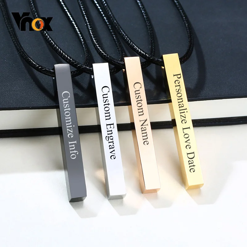 Мужские ожерелья из нержавеющей стали с квадратной гравировкой и именем на заказ