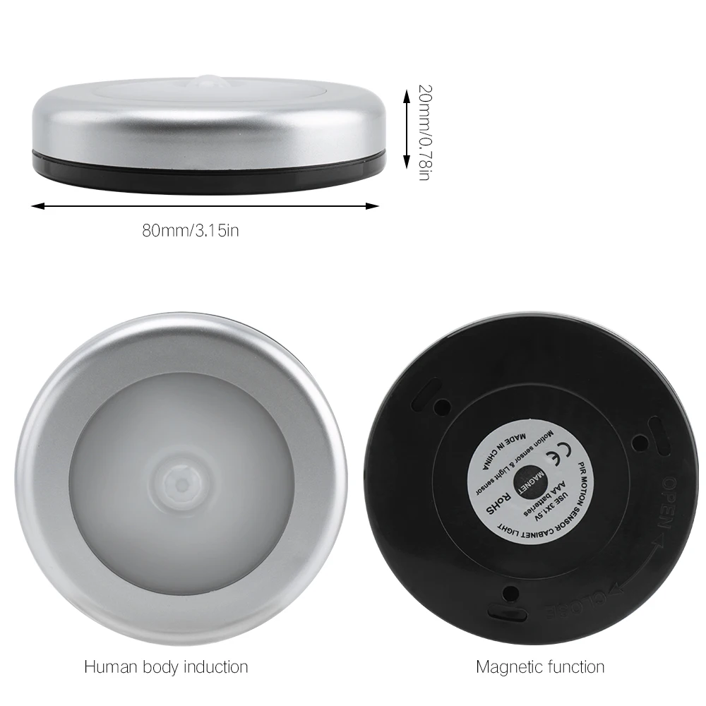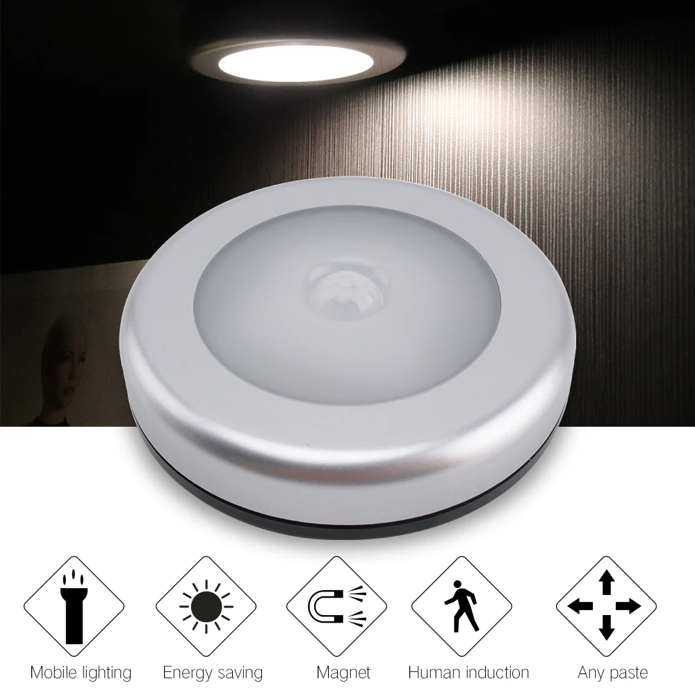 Датчик движения BORUiT с пассивным инфракрасным датчиком движения, беспроводной магнитный светильник для кухни, спальни, лестницы, ночник