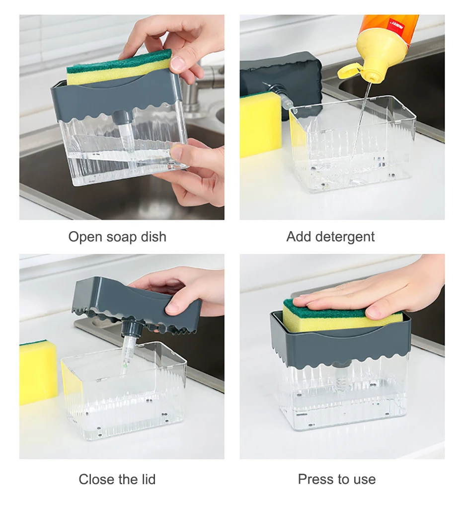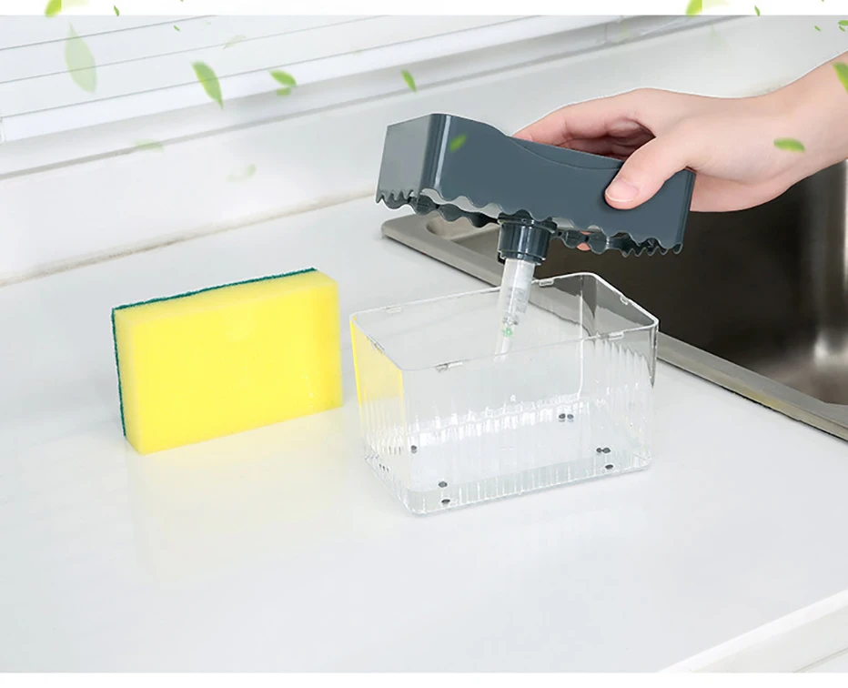Дозатор для мыла с ручным нажатием, Кухонный Контейнер для хранения жидкости из АБС-пластика, держатель для губки, дозатор для мыла