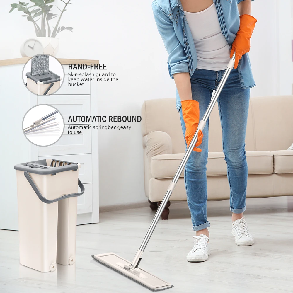 Плоская швабра с отжимом и ведро, сменная Швабра из микрофибры для мытья пола, профессиональная Швабра для пола для домашней уборки