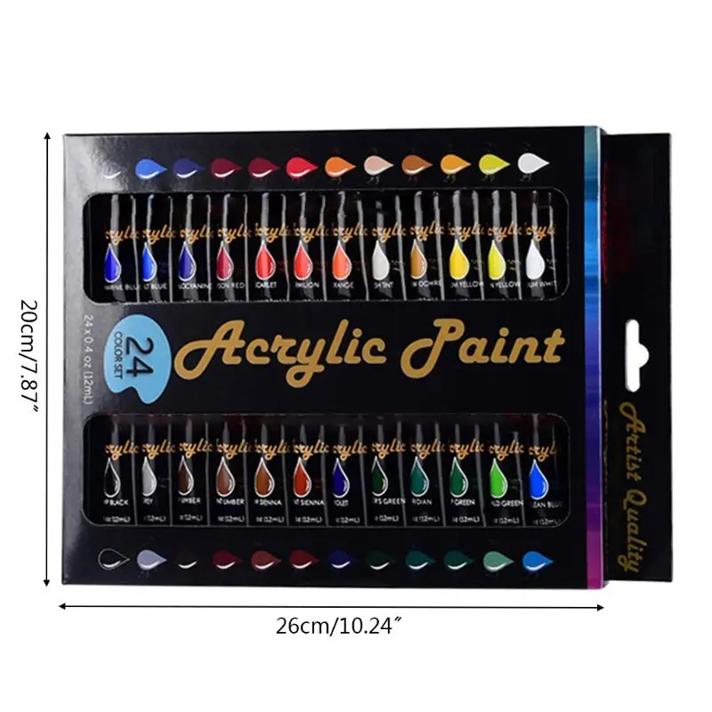 Набор акриловых красок с 24 видами ярких, богатых пигментированных цветов.