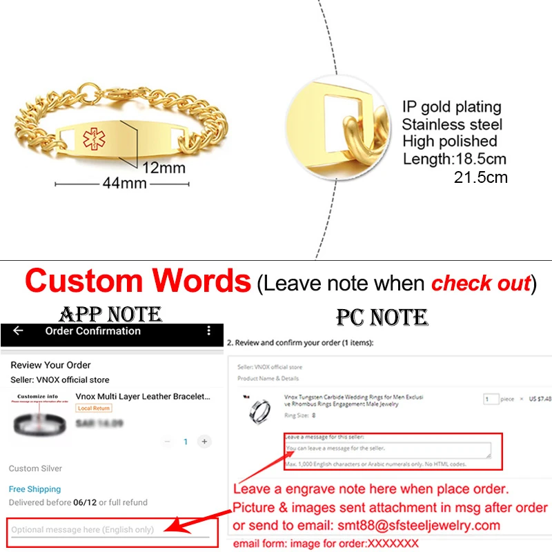 Материал из нержавеющей стали, не вызывает аллергии, не ржавеет, не содержит свинец, не содержит никельМедицинская идентификация ювелирных изделий может сэкономить жизни, предоставляя первой ответственной критической информации о здоровье в чрезвычайной ситуации. Ювелирные изделия Vnox имеют большой выбор медицинских ID ювелирных изделий для выбора.