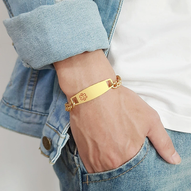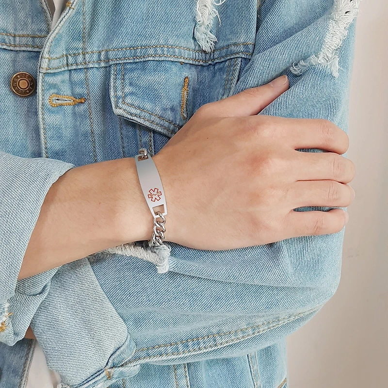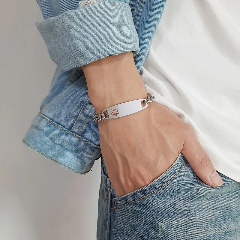 Почему носить Медицинский ID продукт:Ваше медицинское удостоверение личности обеспечивает быстрое признание ваших медицинских условий, аллергии, лекарств или пожеланий лечения; Это приводит к более быстрой и эффективной медицинской помощи.Медицинский ID браслет уменьшает ошибки лечения, которые могут возникнуть в результате отсутствия медицинской записи пациента во время чрезвычайной ситуации или при поступлении в госпитальМедицинский идентификатор говорит за вас в случае чрезвычайной ситуации, если вы не реагируете