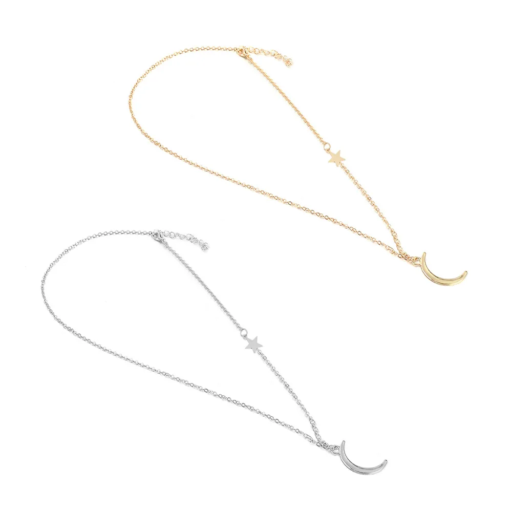 2020 модное простое ожерелье с подвеской в виде Луны и звезды, ювелирные изделия, подарок для женщин, подвеска в виде короткой Луны, аксессуары для цепочки до ключиц, оптовая продажа