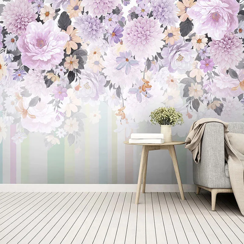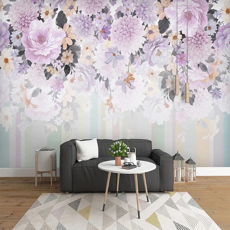 3D обои, современные минималистичные, ручная роспись, акварель, фиолетовый цветок, Фреска, модный домашний декор, настенная живопись, наклейки для гостиной