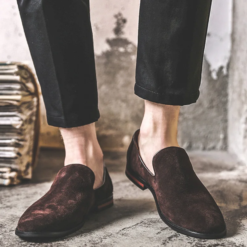 Замшевые Кожаные мужские мокасины, модельные туфли без шнуровки, мужская повседневная обувь, Мужская Свадебная обувь для вечеринок