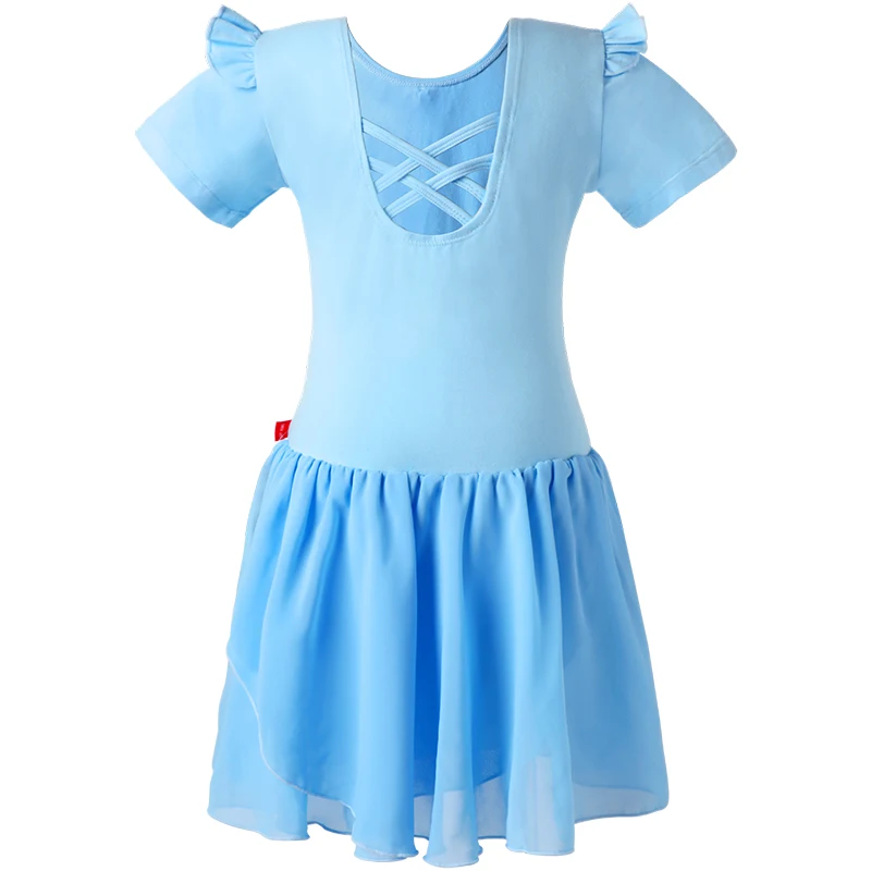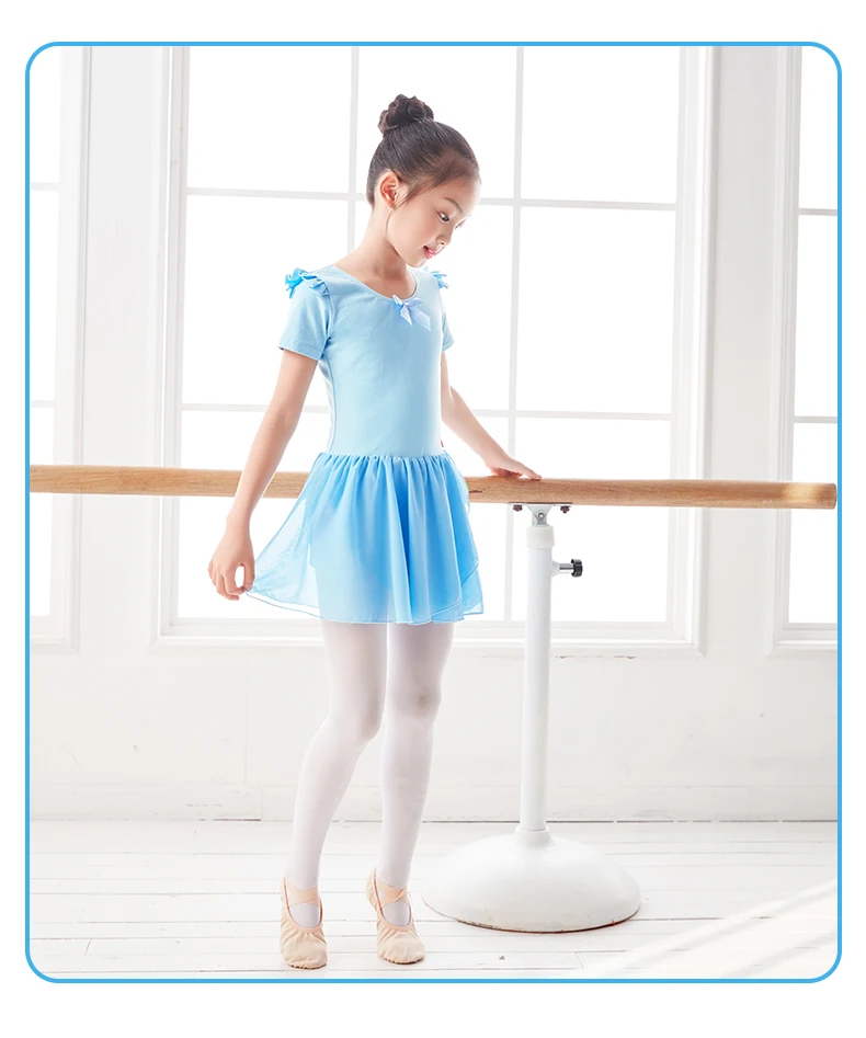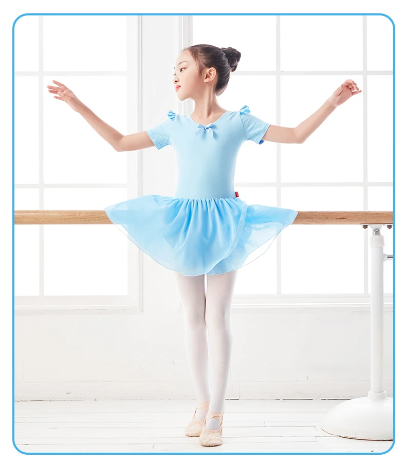 Балетное платье для девочек Детская Одежда для танцев короткий рукав шифоновое платье с юбкой балетки гимнастическое, балетное трико костюм синего цвета лотоса Одежда для танцев